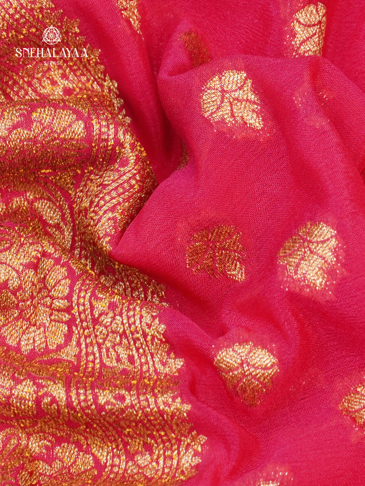 Rich Pink Banaras Crepe Silk Saree