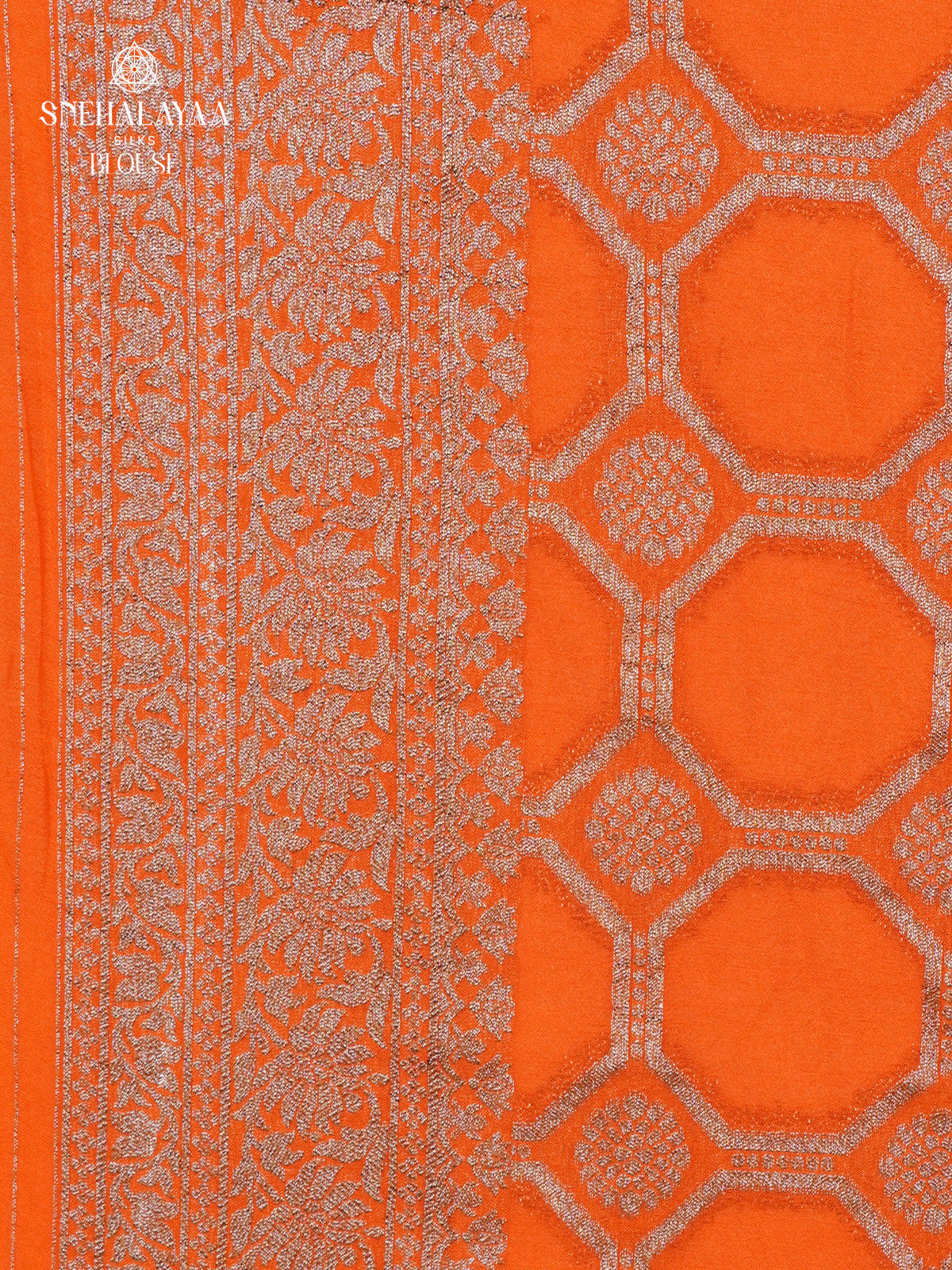 A Banaras crepe saree is a luxurious, traditional Indian garment made from high-quality crepe fabric, known for its graceful drape and glossy texture