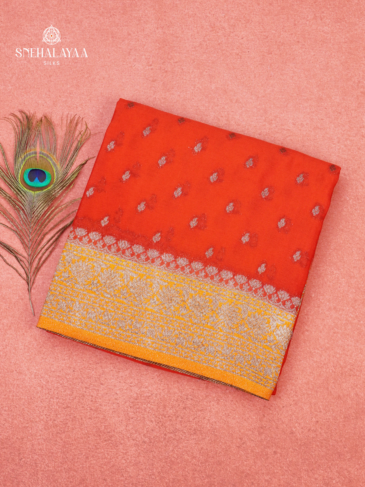 Rust Orange Banaras Crepe Silk Saree