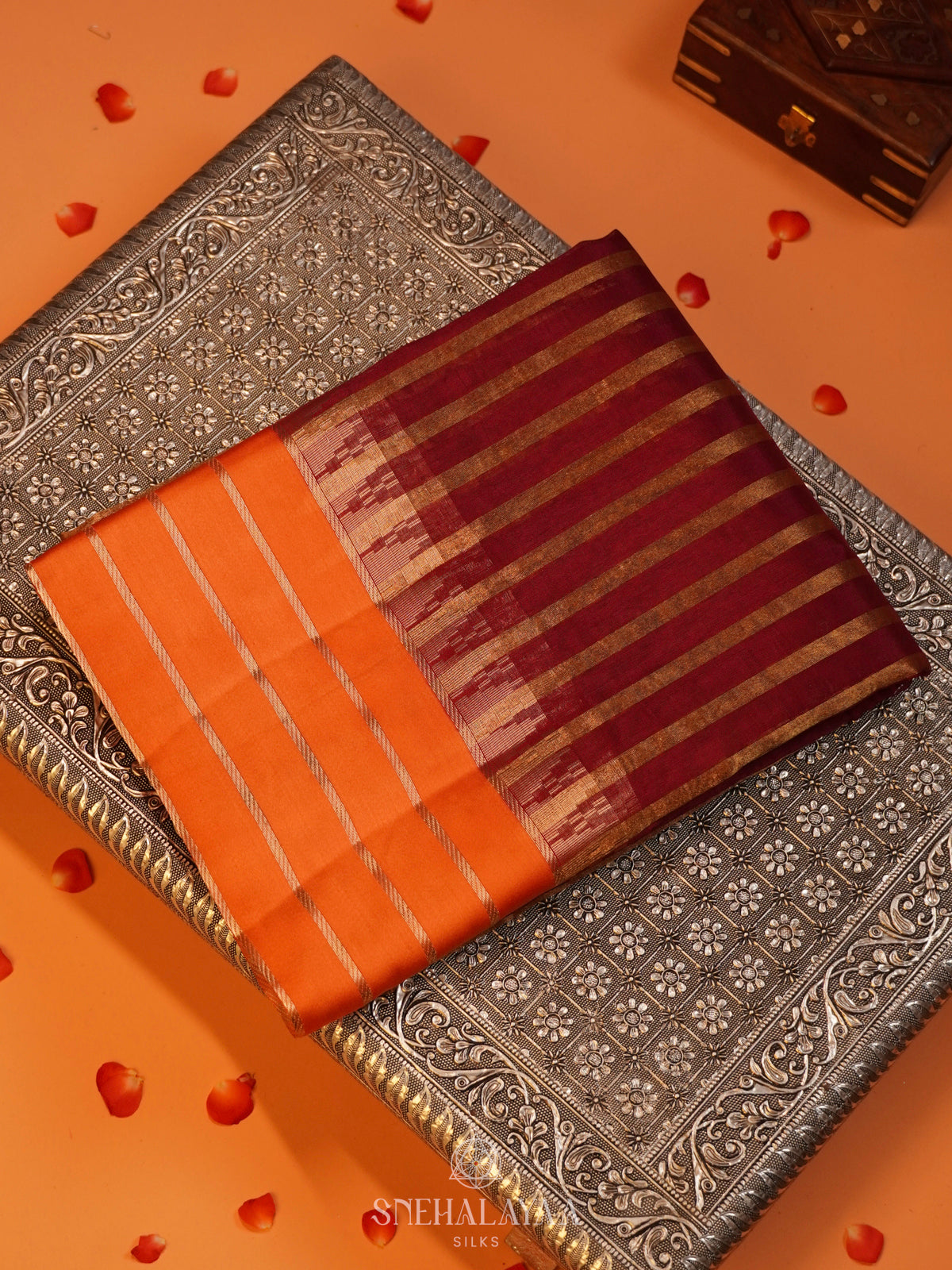 The Banaras Kora silk saree is known for its sheer texture and rich, timeless elegance. Woven in Varanasi, it beautifully blends delicate translucence with classic Banarasi artistry.