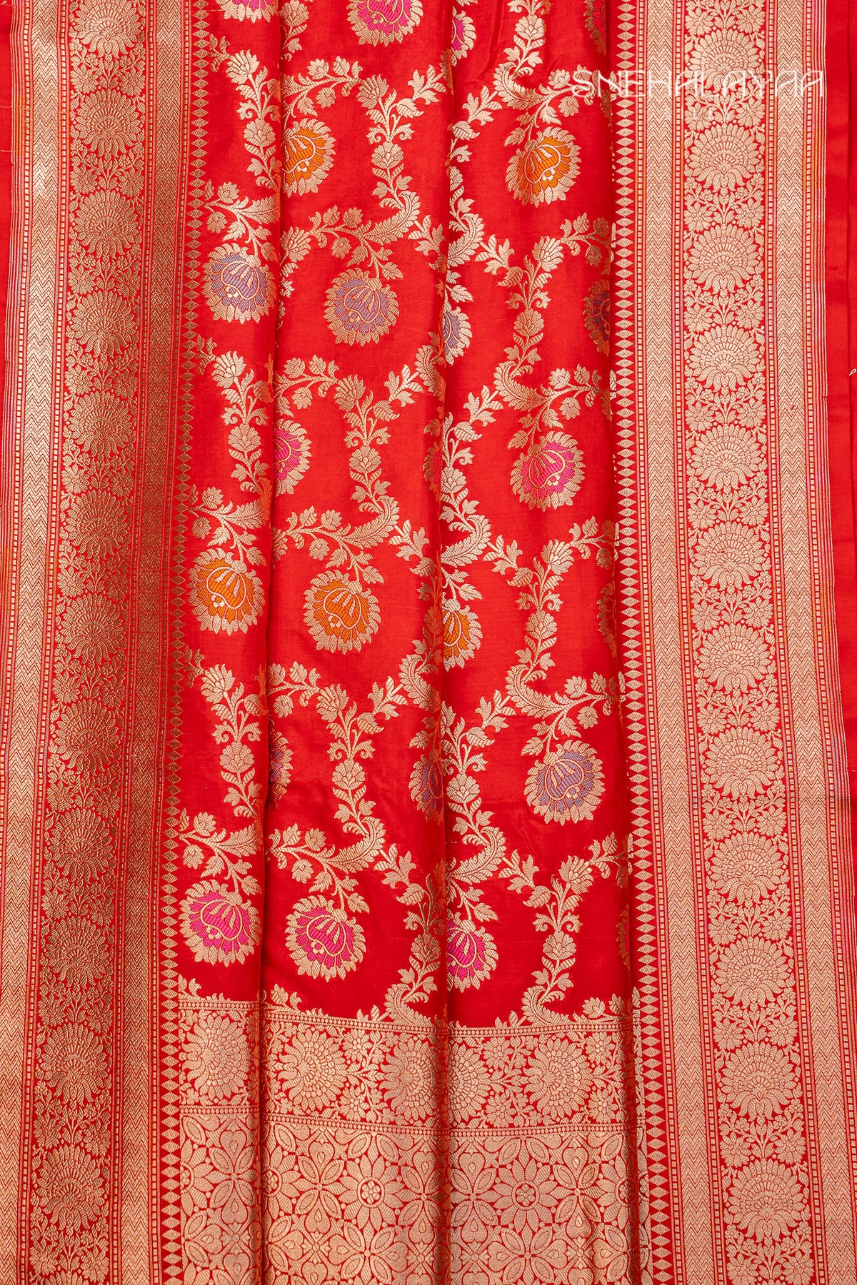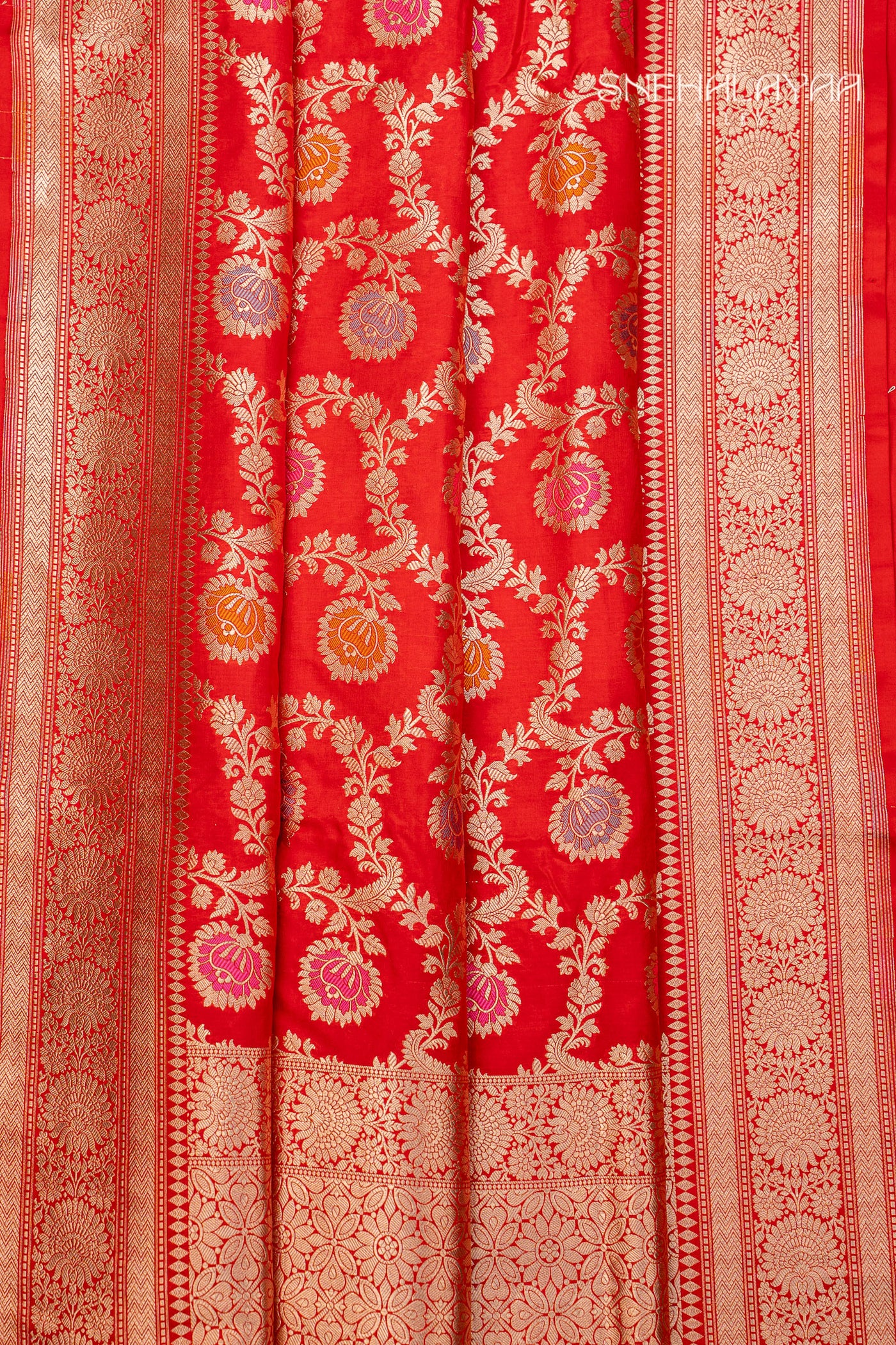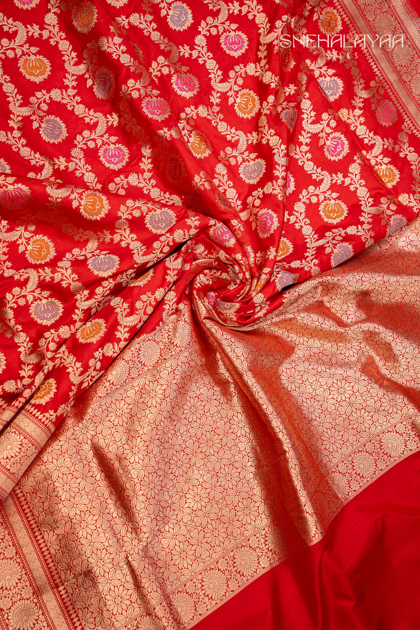 This saree is made from high-quality silk, this saree is renowned for its rich texture and luxurious feel. Banaras silk is known for its durability and lustrous finish, making it a prized choice for traditional attire.