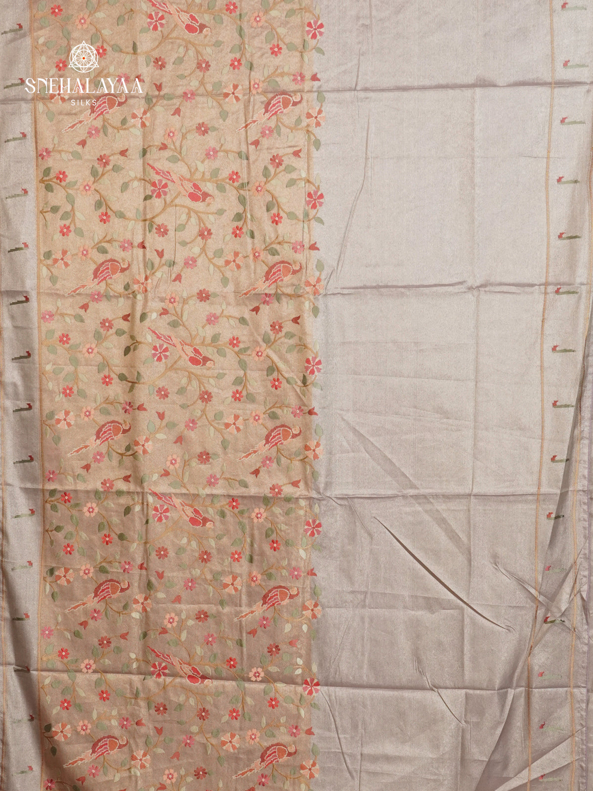 A Tussar embroidery saree showcases the natural texture and earthy elegance of Tussar silk enhanced with intricate handcrafted embroidery. It offers a refined, graceful look ideal for festive occasions and elegant daytime wear.