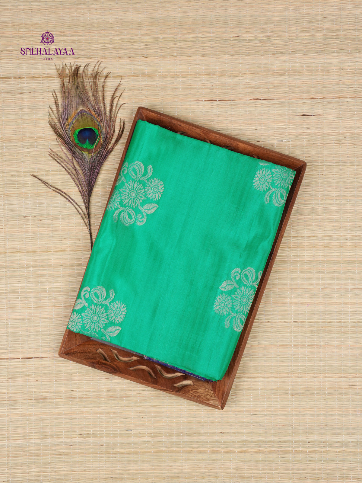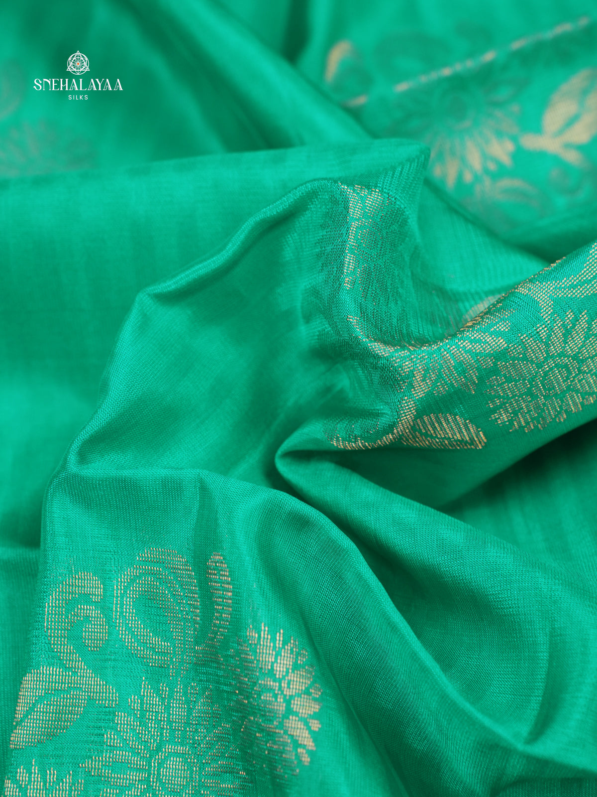 Sea Green Borderless Kanjivaram Soft Silk Saree