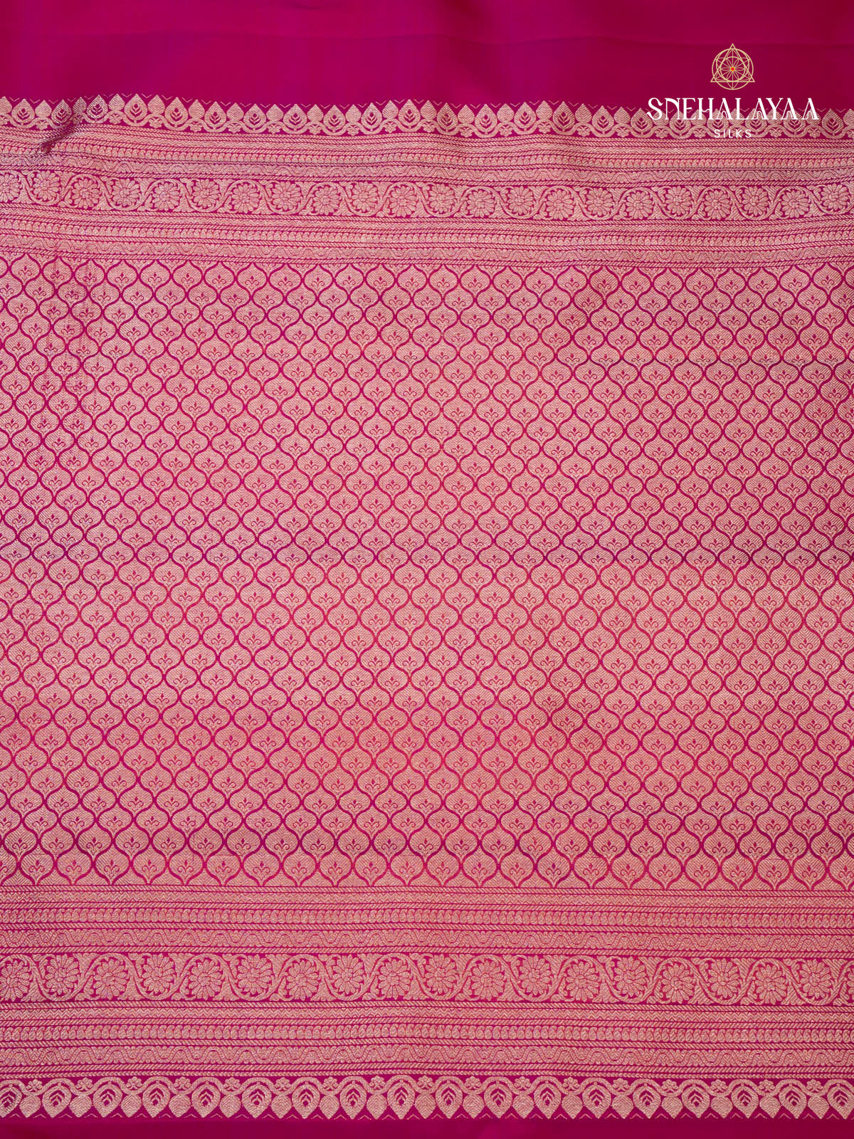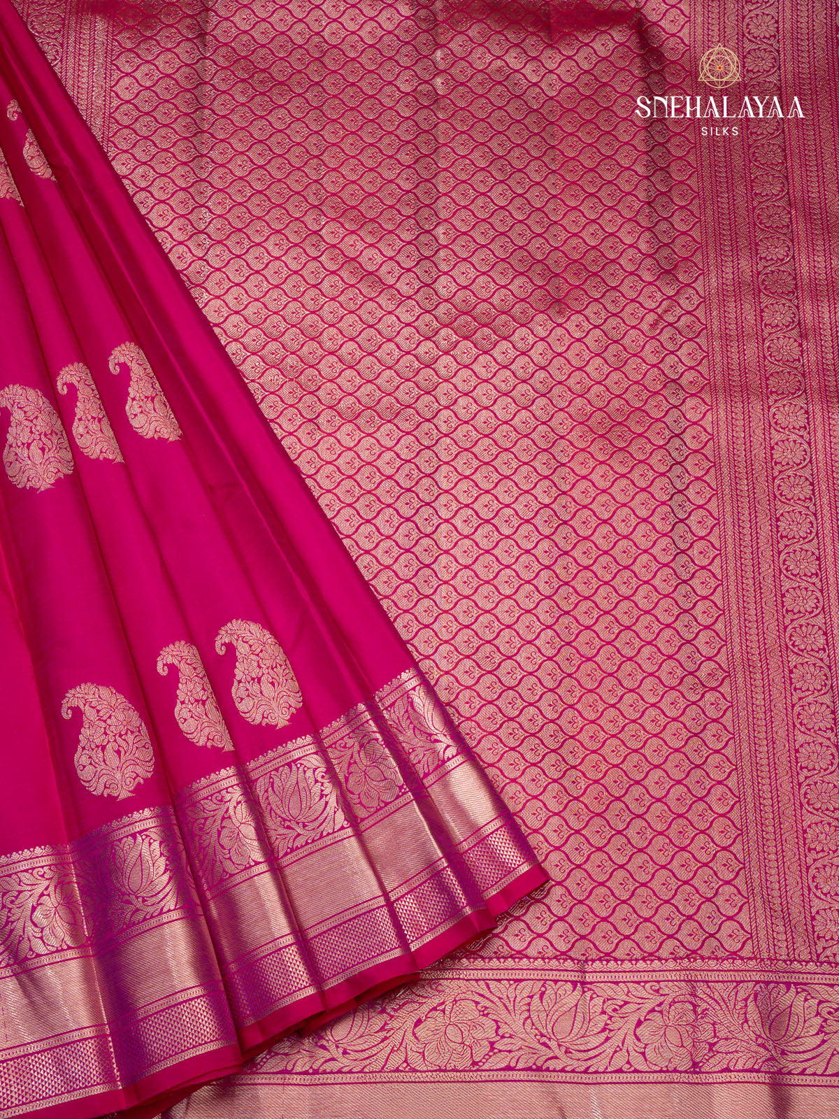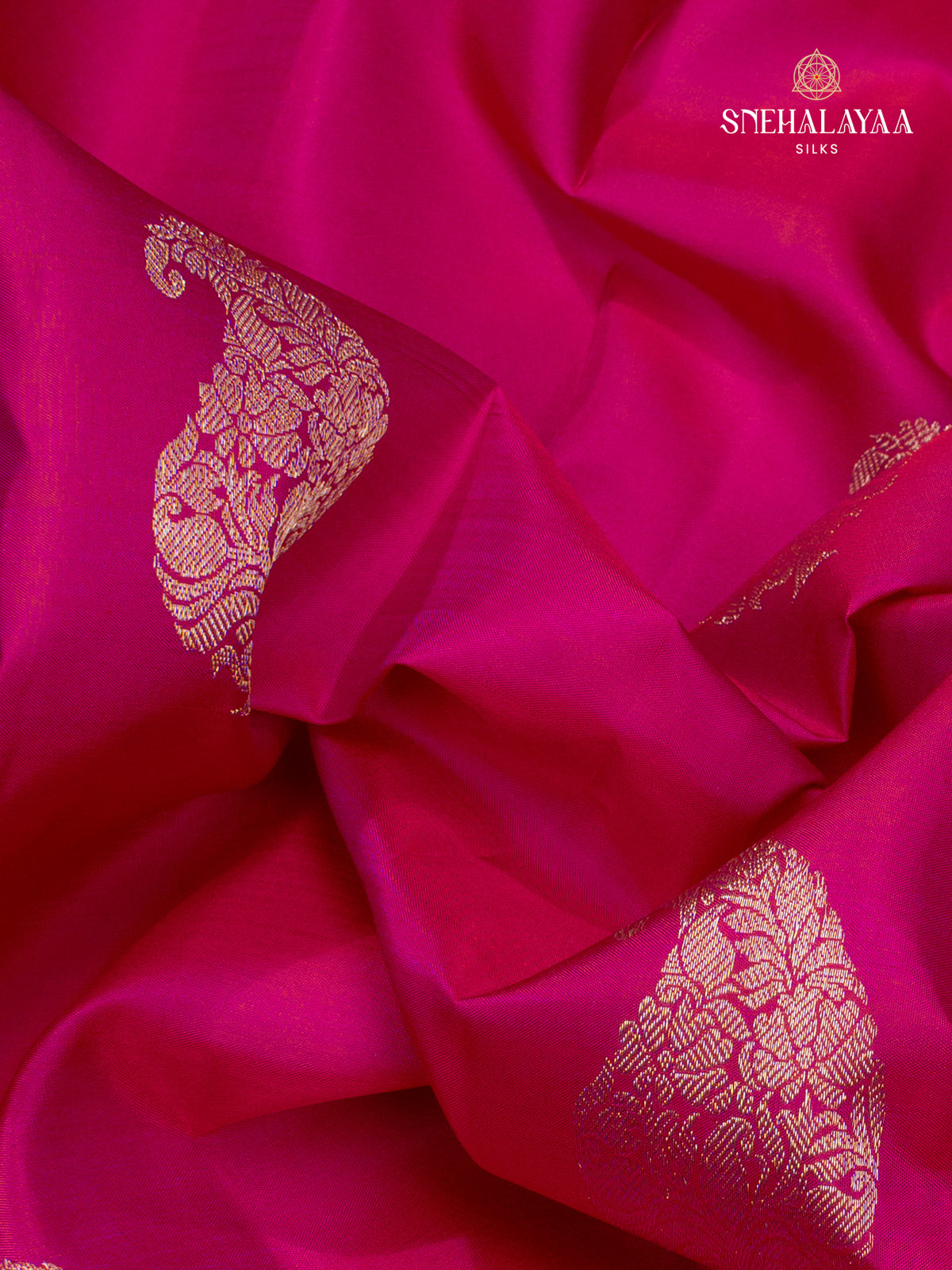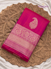 A Kanjivaram silk saree with buttas is a luxurious handwoven drape made from pure mulberry silk, featuring intricate butta (motif) designs scattered across the body. Known for its rich texture, vibrant colors, and timeless elegance