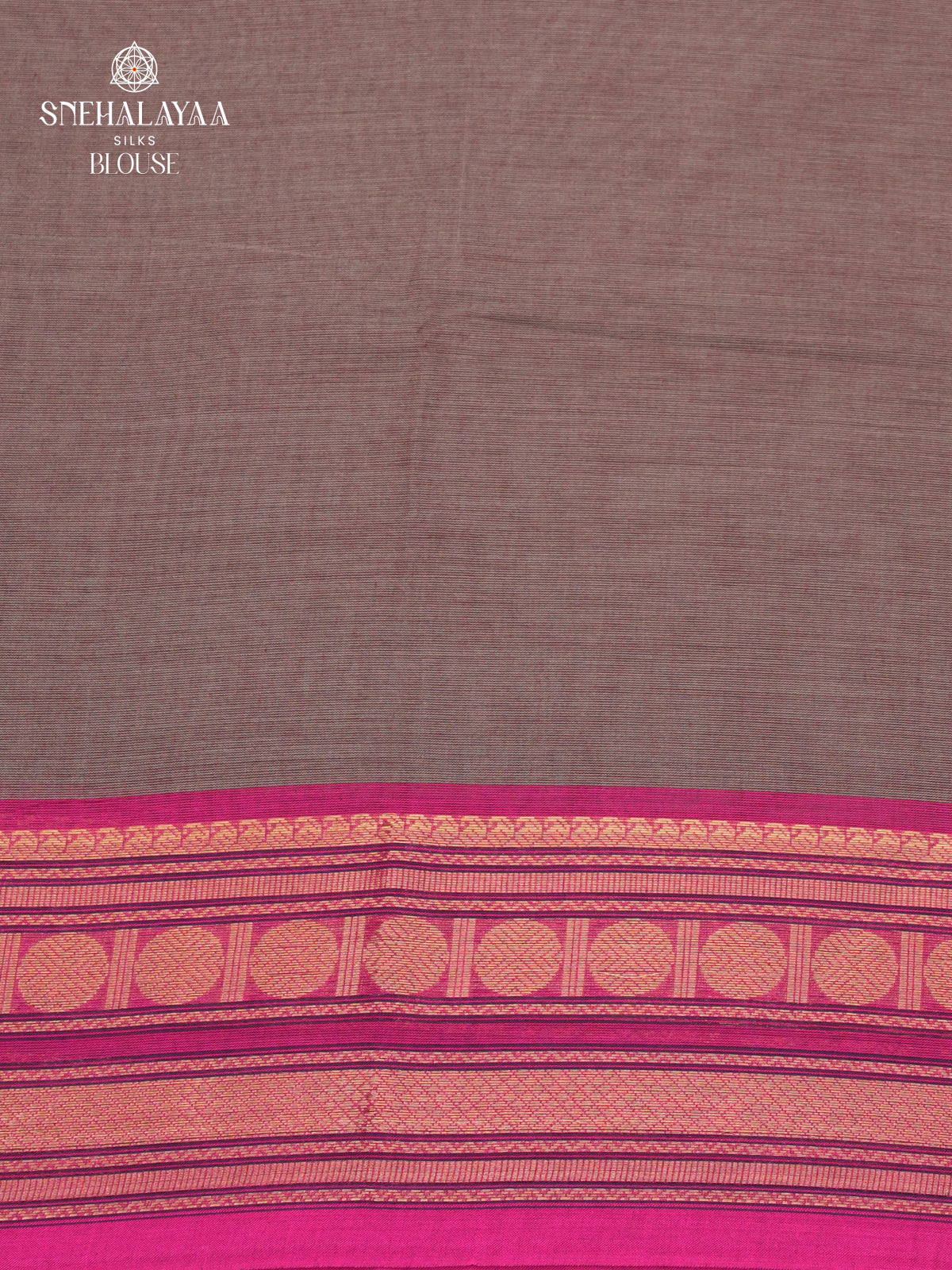 A classic Chettinad cotton saree with a soft smoky mauve body and traditional handloom texture. Breathable, lightweight cotton designed for comfortable everyday wear.