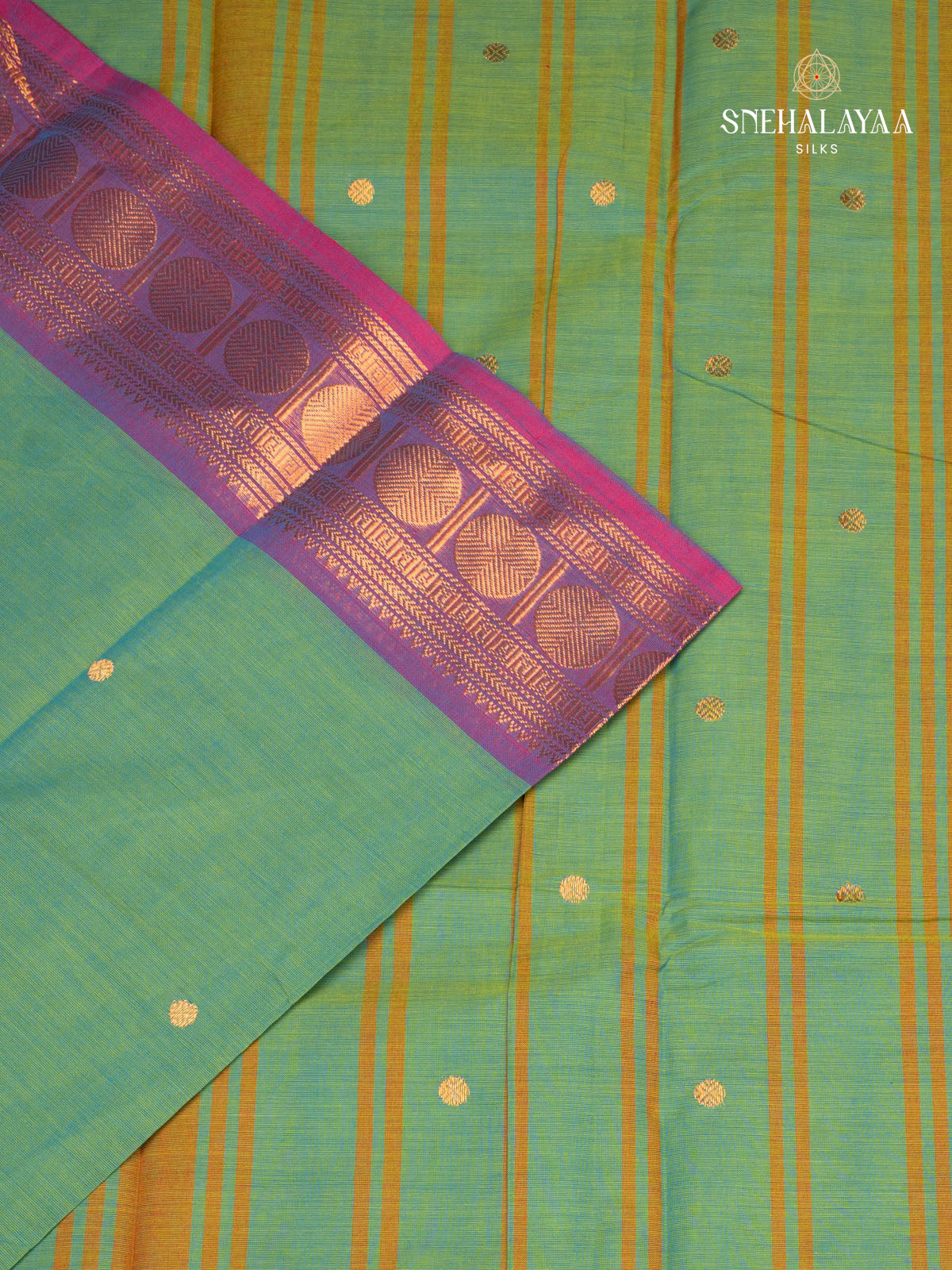 Chettinad cotton sarees are renowned for their bold, geometric patterns and stripes. They often feature vibrant, contrasting colors in wide checks
