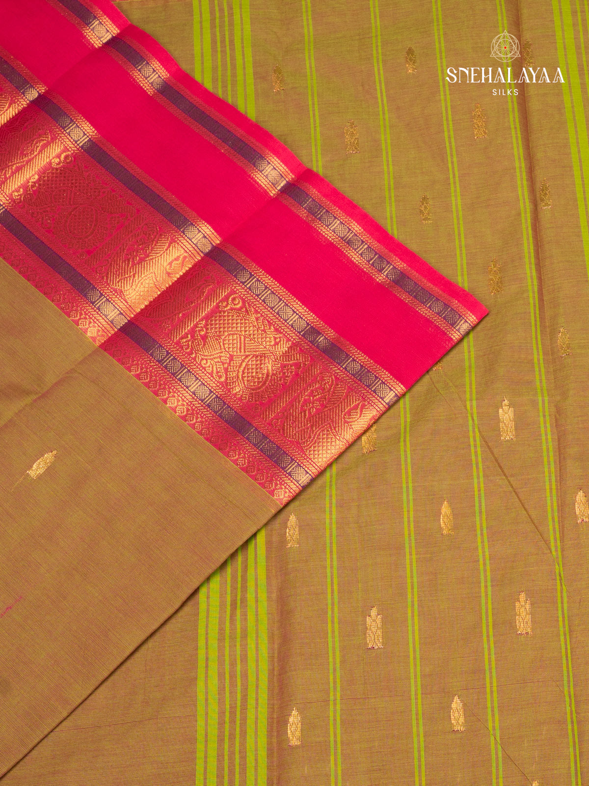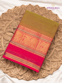 Mustard Green Chettinad Cotton Saree