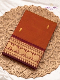 Chettinad cotton sarees are renowned for their bold, geometric patterns and stripes. They often feature vibrant, contrasting colors in wide checks