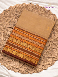 Chettinad cotton sarees are renowned for their bold, geometric patterns and stripes. They often feature vibrant, contrasting colors in wide checks