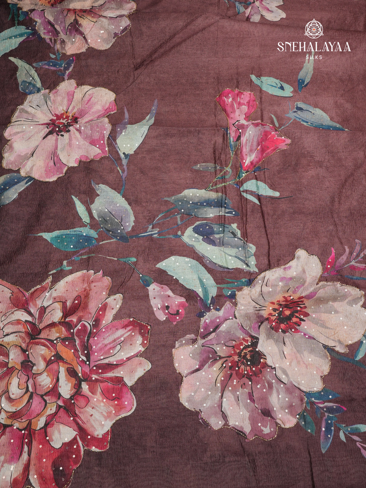 A beautiful crush-finish saree adorned with elegant embroidery. Perfect for festive and special occasions with its soft drape and rich detailing.