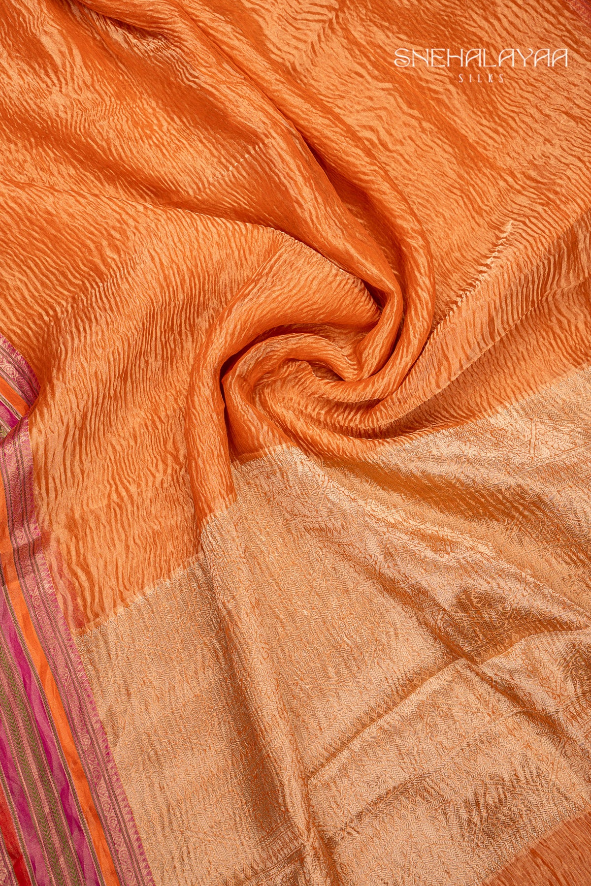 Metallic Orange Crush Tissue Saree