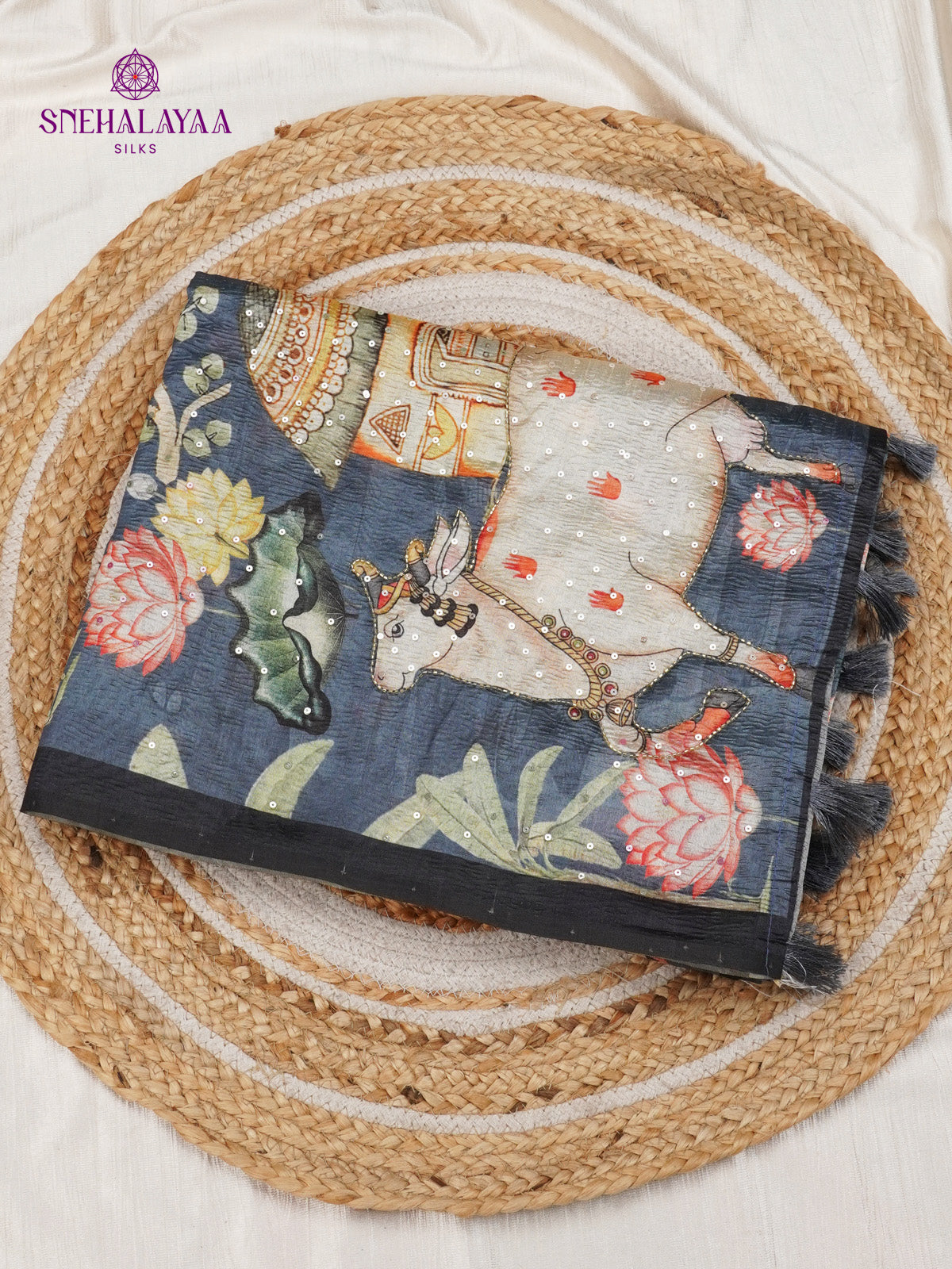 A beautiful crush-finish saree adorned with elegant embroidery. Perfect for festive and special occasions with its soft drape and rich detailing.