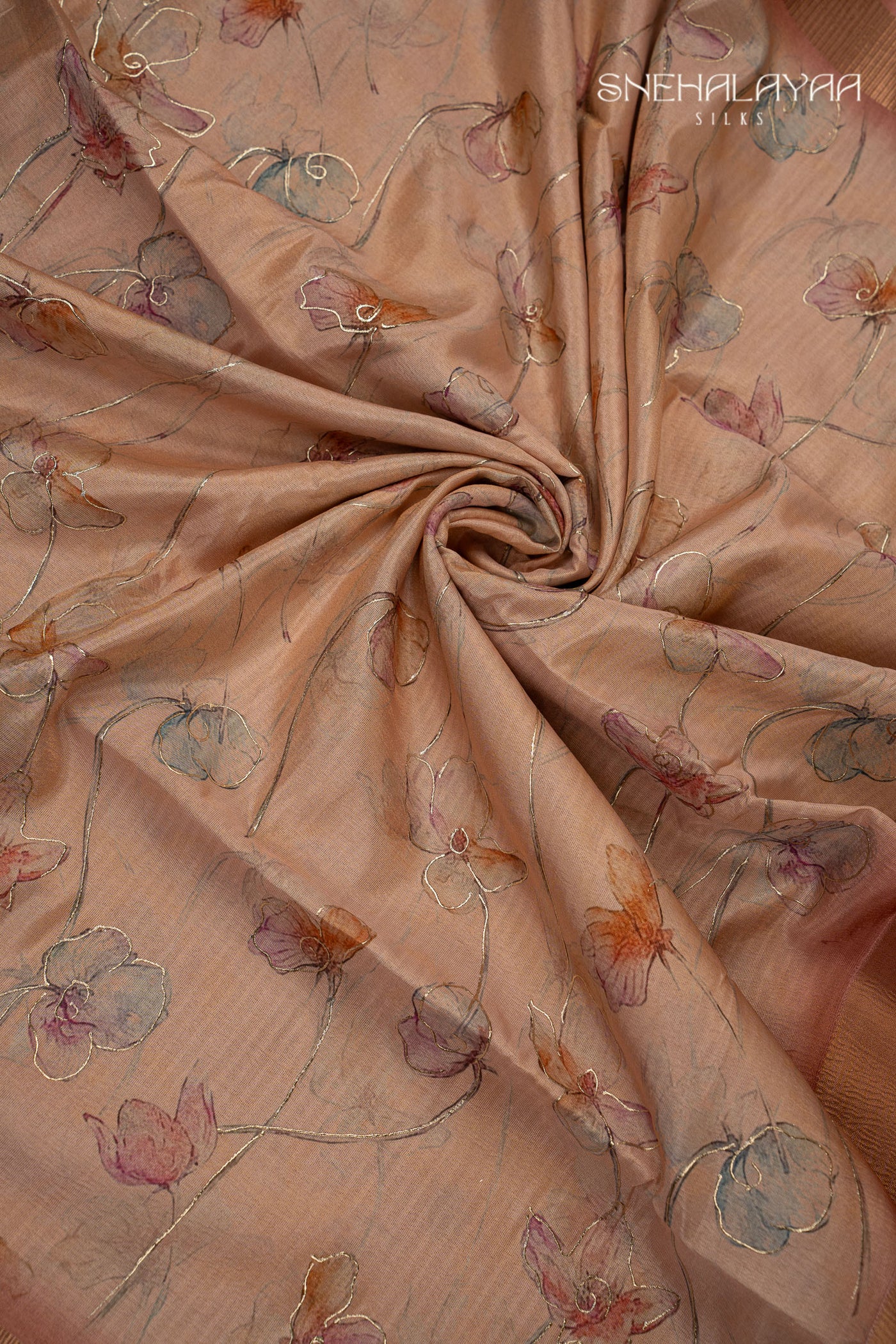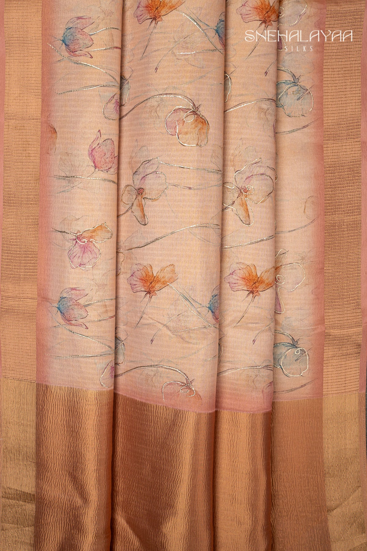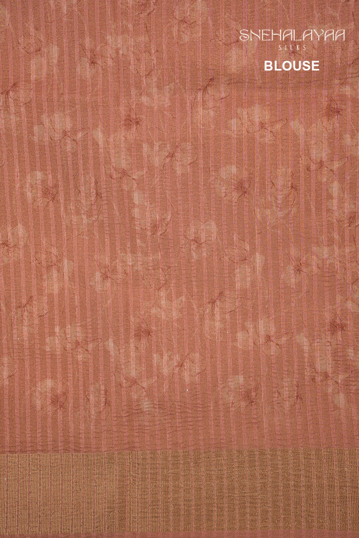 Tissue crush saree is a beautiful and luxurious saree made from a blend of silk and metallic fibers, often woven into a tissue fabric, giving it a delicate, airy, and semi-crushed texture.