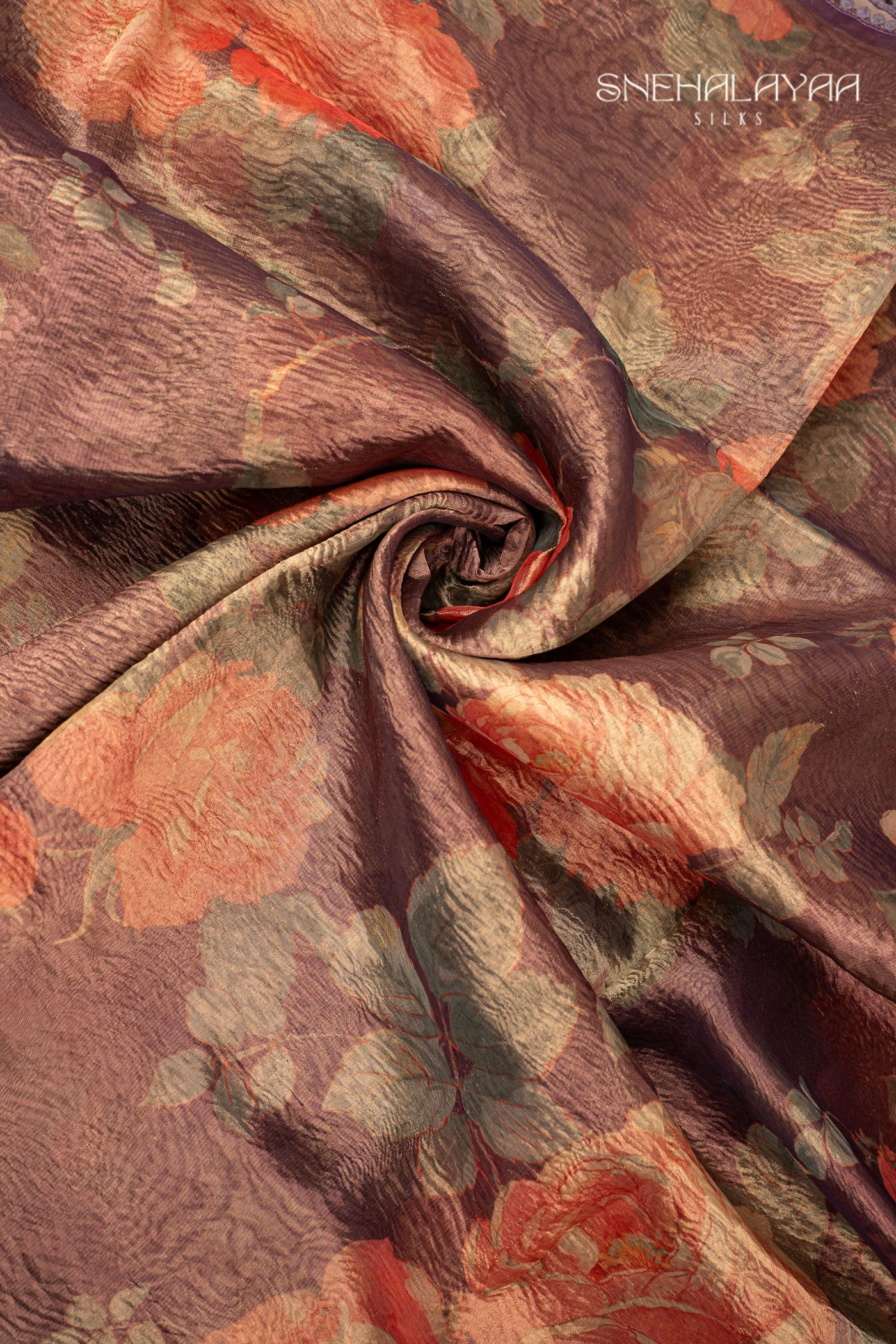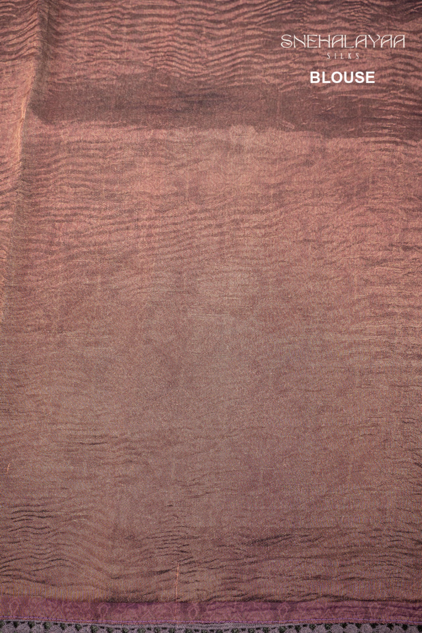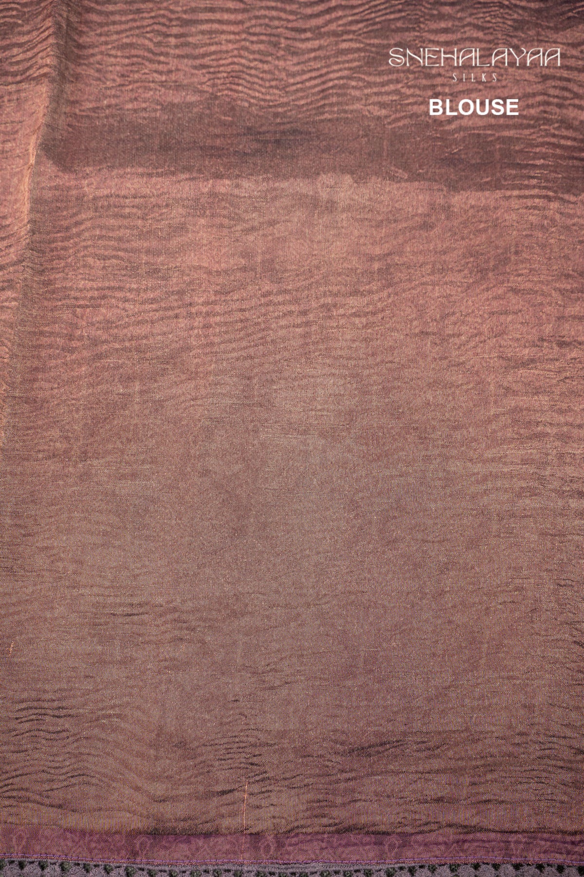 Tissue fabric is typically made from silk, nylon, or polyester, and it's lightweight and delicate. It has a lustrous finish that gives the saree a shimmering, glowing appearance.
