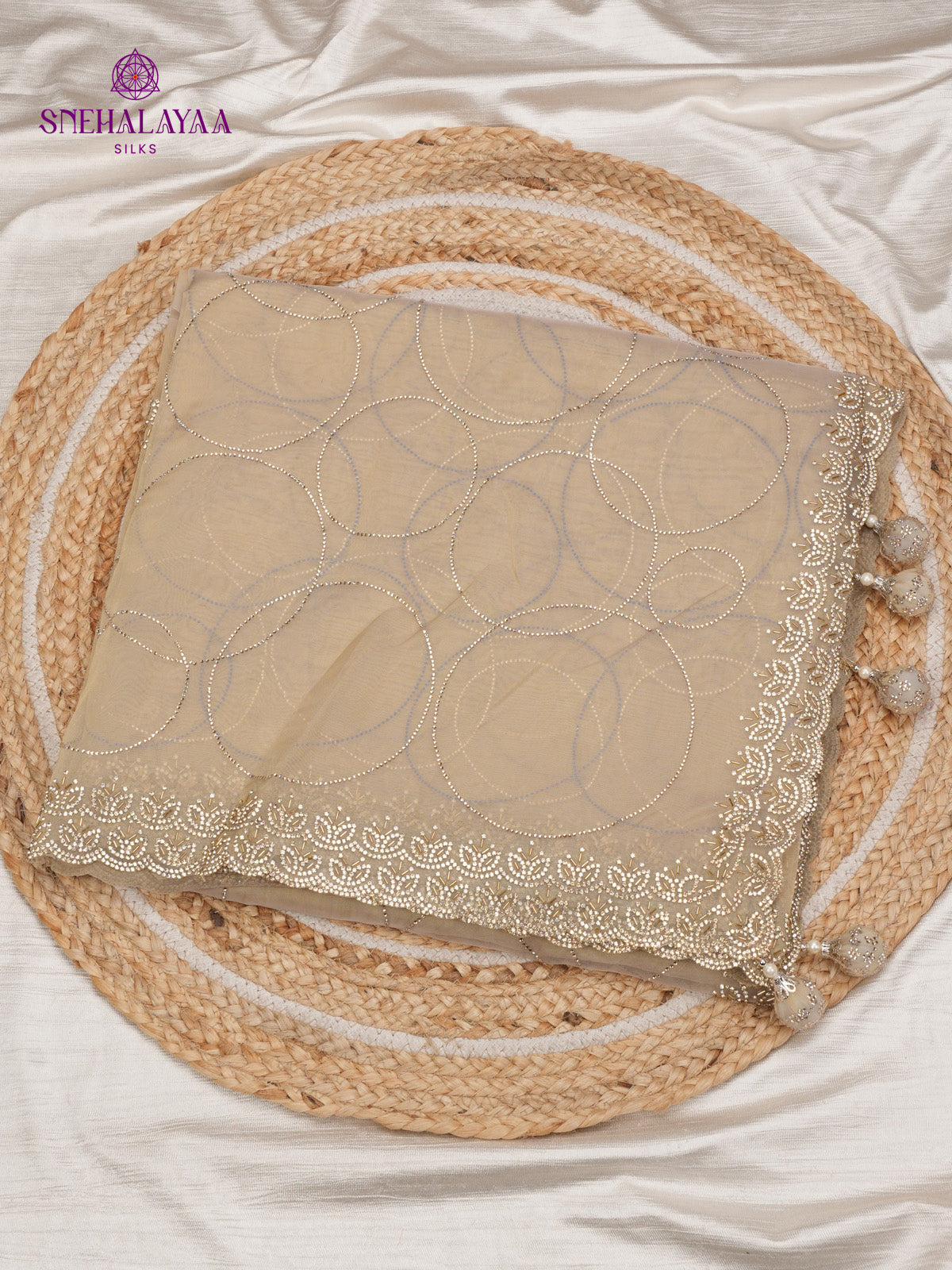 This designer stone work saree features shimmering stones arranged in intricate patterns. A show-stopping piece that elevates your style instantly.