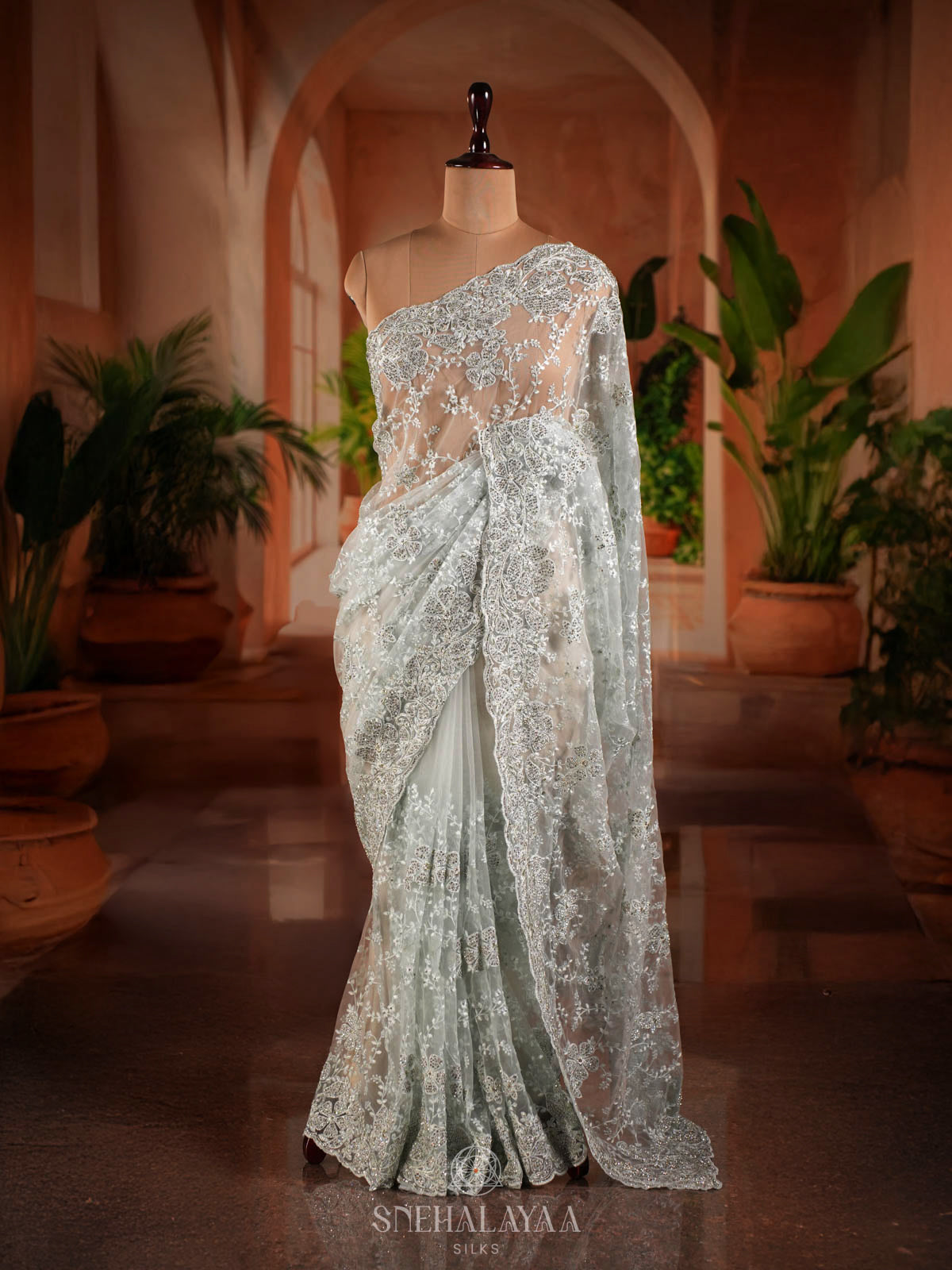 Pale Blue Designer Saree