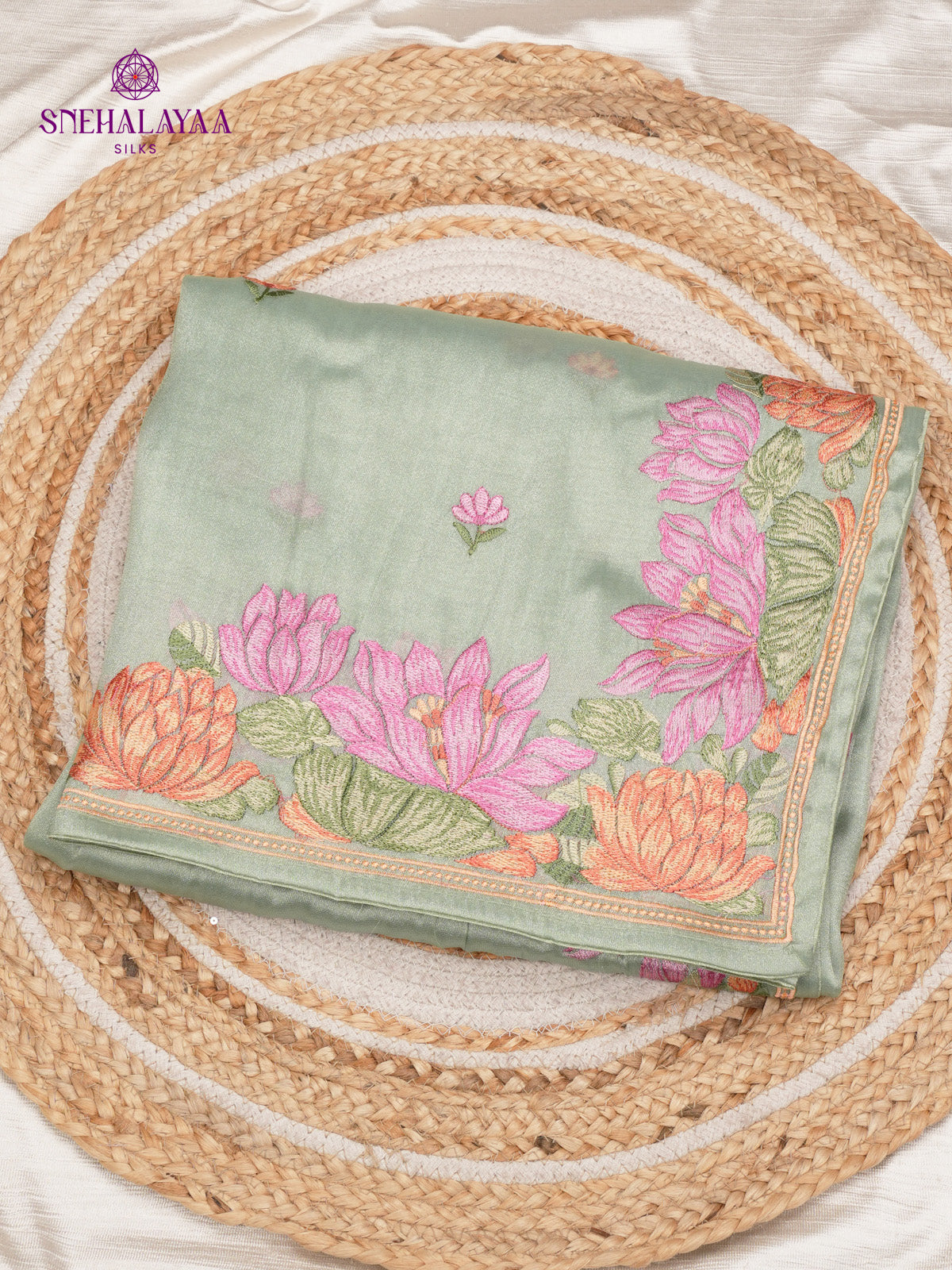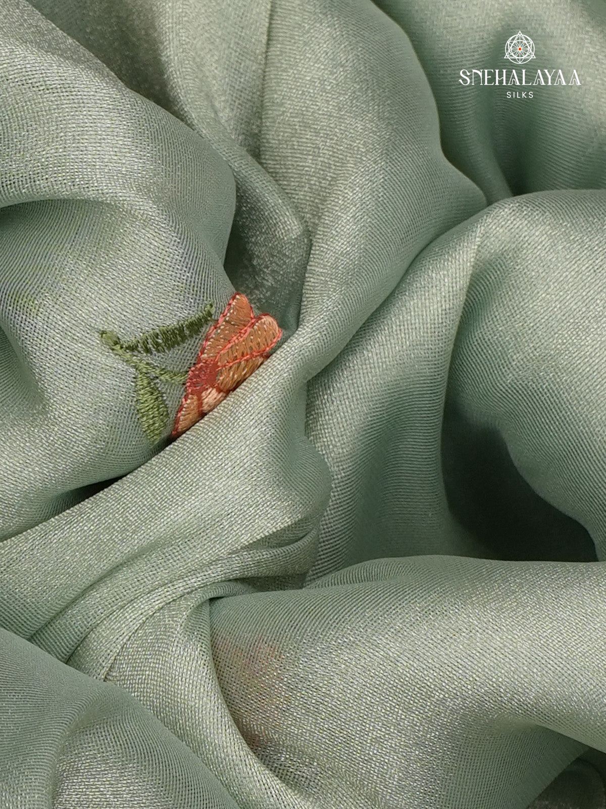 A designer embroidery saree adorned with intricate threadwork and shimmering details. Perfect for weddings and grand celebrations.