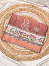 Elegantly crafted dola saree featuring intricate designs running throughout the body, complemented by a contrast pallu and blouse for a timeless appeal