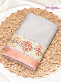 Matka silk is a heavy, slub silk fabric with a rough texture and slightly dull sheen. Sarees feature diverse looks, from solid bodies with rich Zari borders to elegant prints and checks.