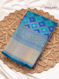 Kanjivaram Silk is prized for its rich weave, luxurious sheen, and durability. Sarees feature vibrant colors, intricate zari work and traditional motifs like temples, checks, and buttis on contrast borders.