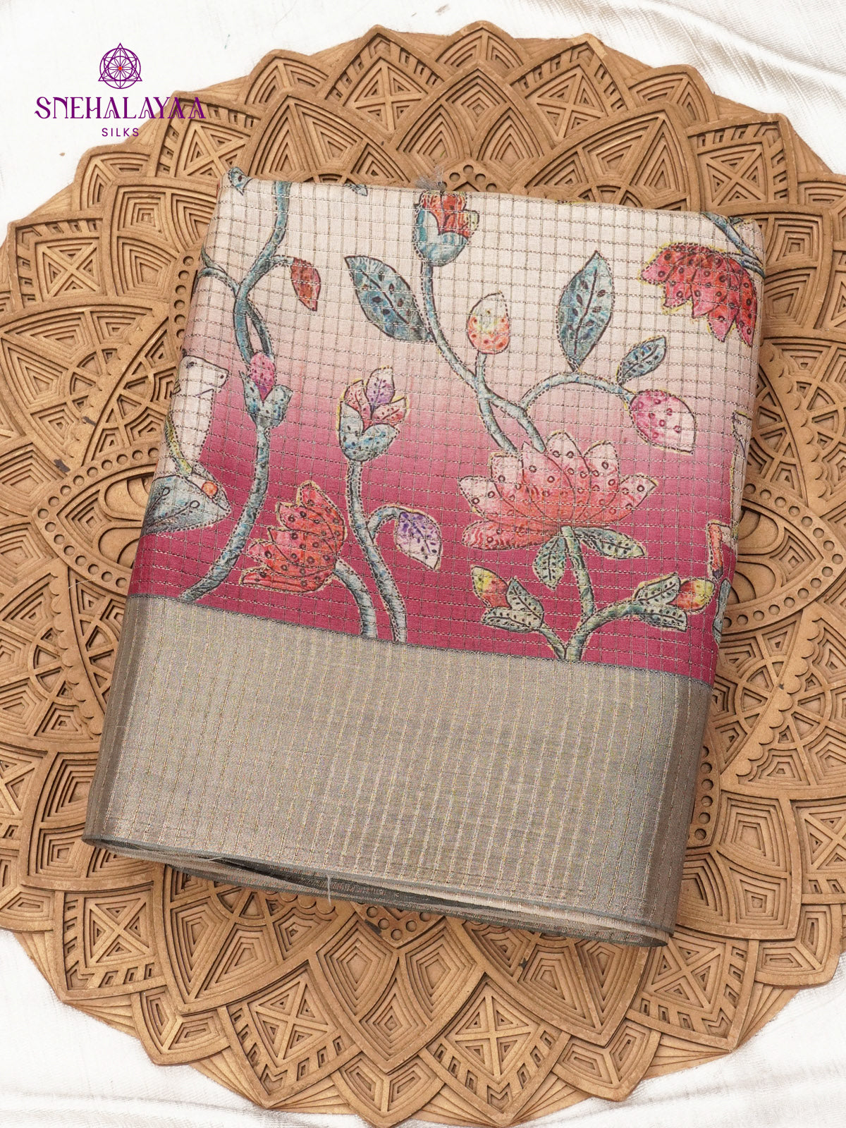 Beautifully printed Tussar with blooming floral patterns that stand out. Its subtle sheen and breathable feel make it a versatile wardrobe favorite.