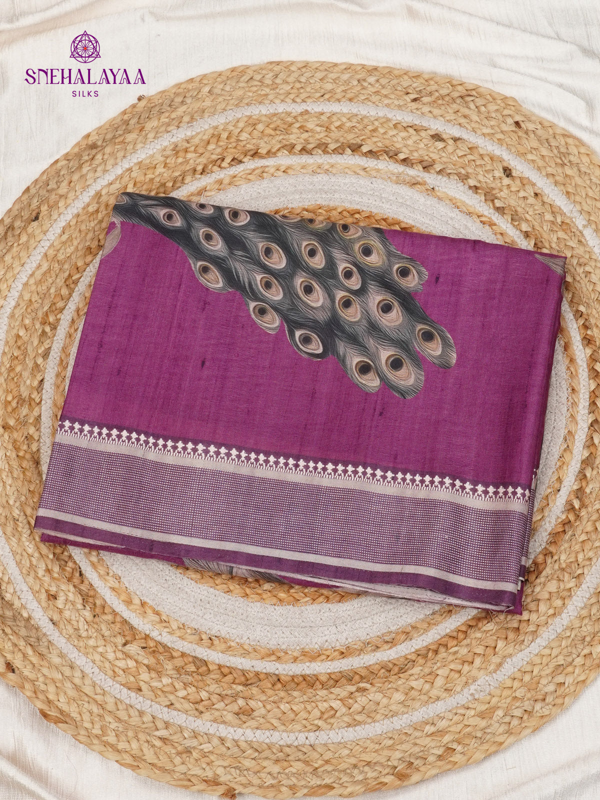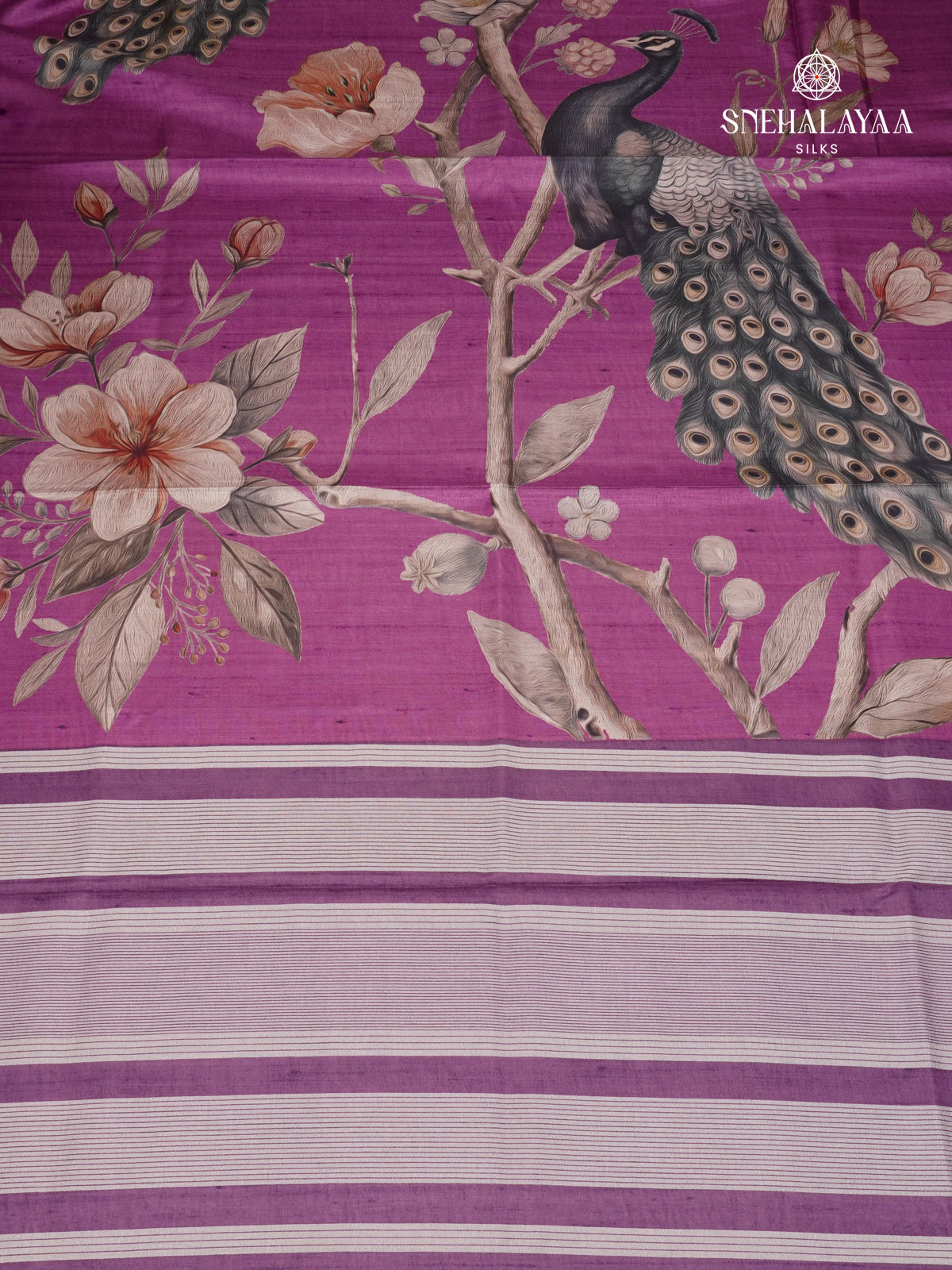 Magenta Purple Floral Printed Tussar Saree