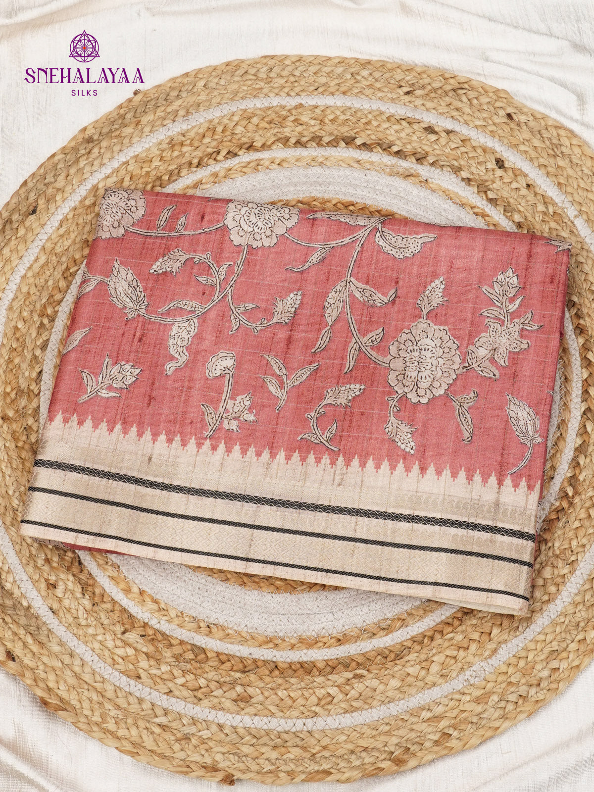 Beautifully printed Tussar with blooming floral patterns that stand out. Its subtle sheen and breathable feel make it a versatile wardrobe favorite.