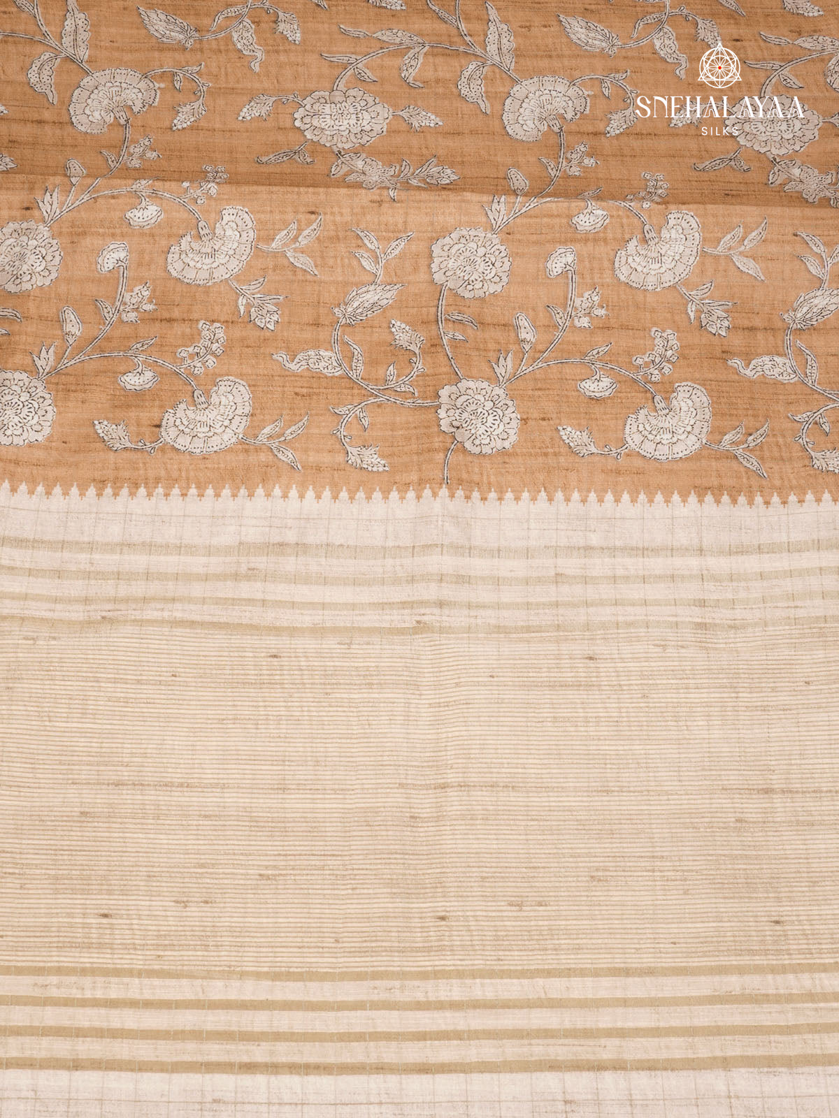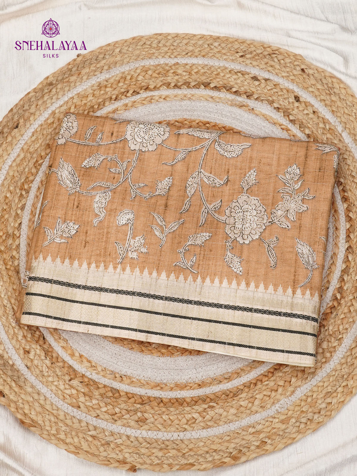 Beautifully printed Tussar with blooming floral patterns that stand out. Its subtle sheen and breathable feel make it a versatile wardrobe favorite.