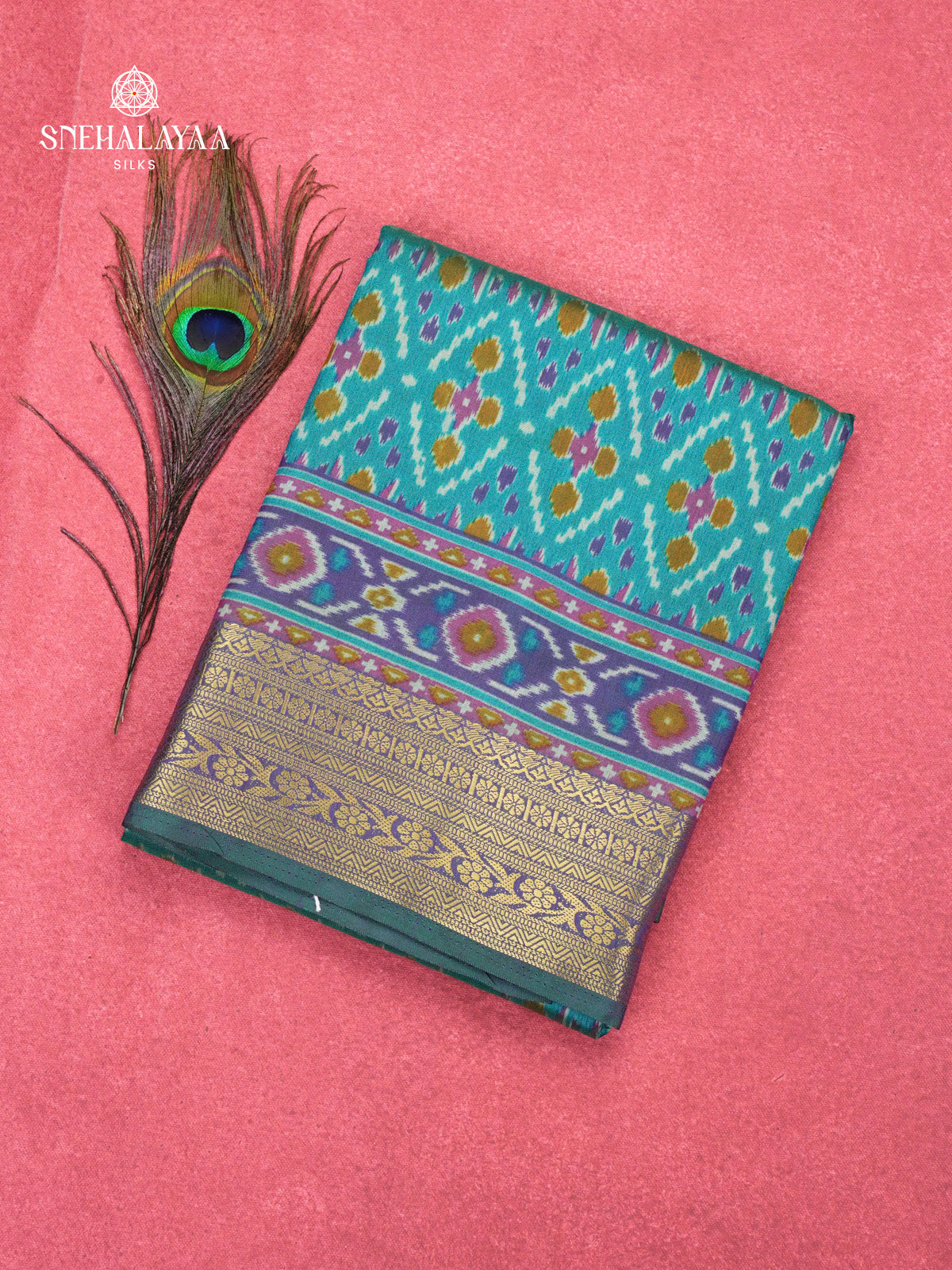 Gracefully handwoven Ikat Silk Saree featuring a striking contrast border and pallu a perfect blend of tradition and style