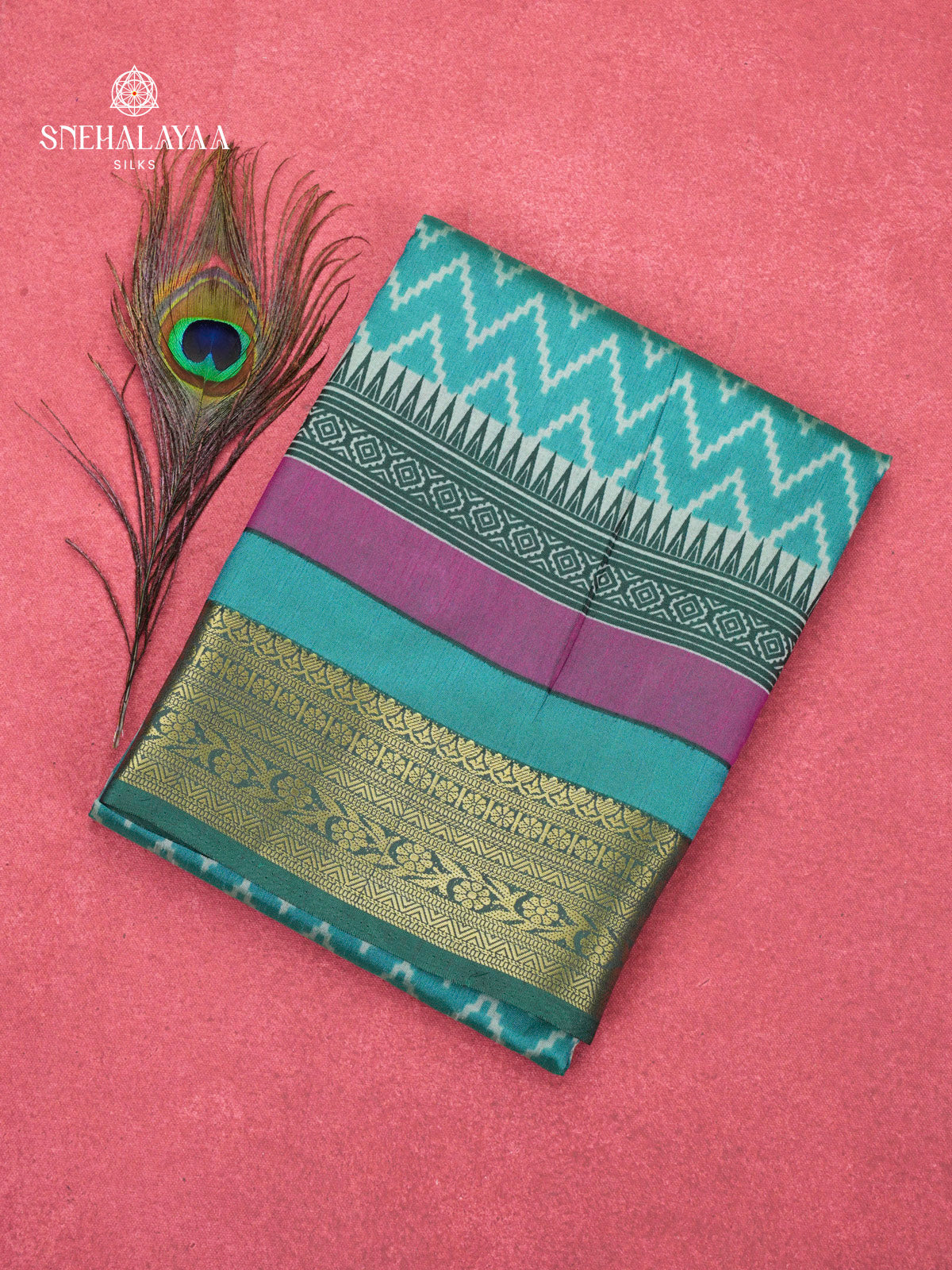 Gracefully handwoven Ikat Silk Saree featuring a striking contrast border and pallu a perfect blend of tradition and style