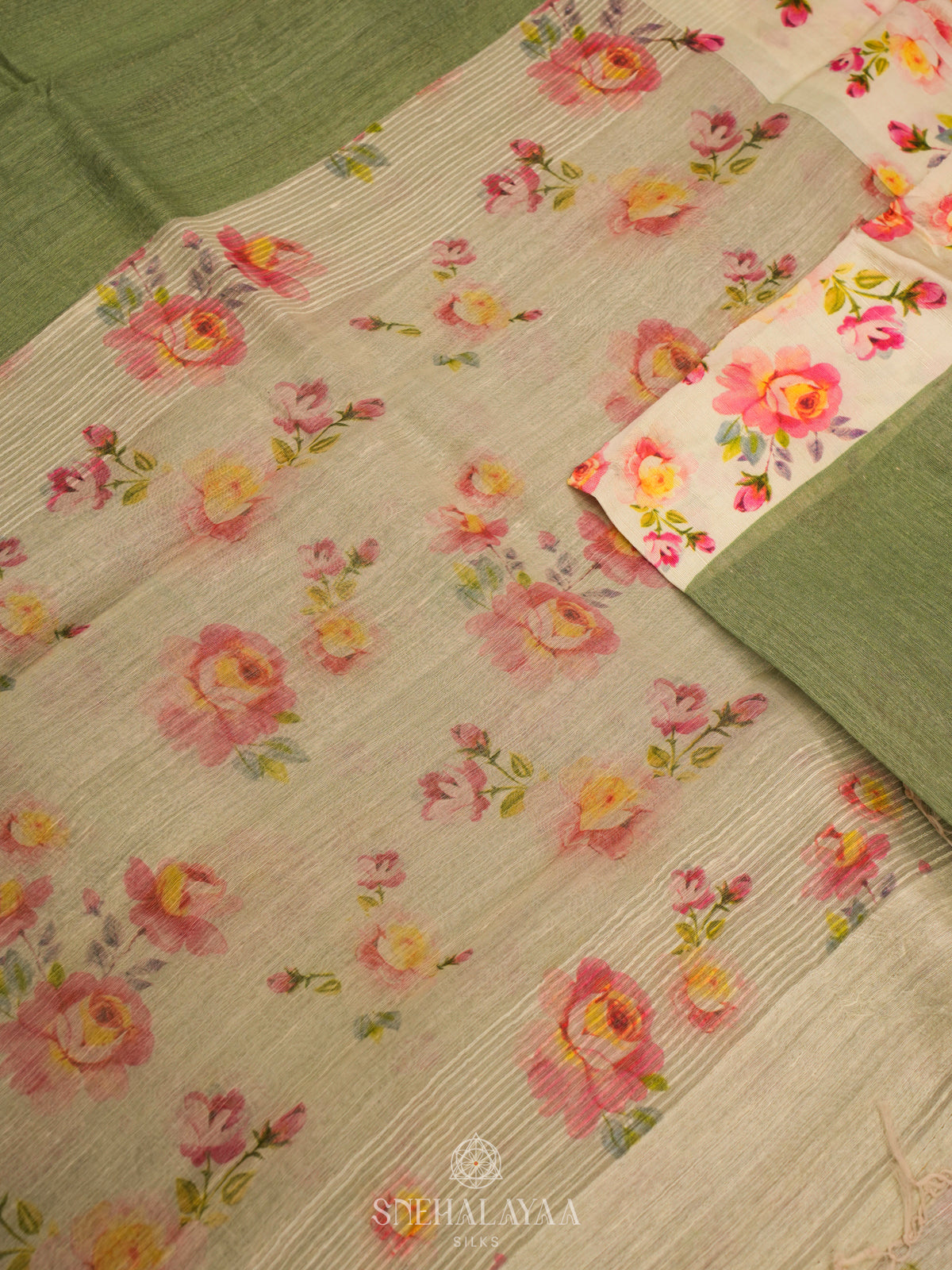 Olive Green Matka Jute Saree