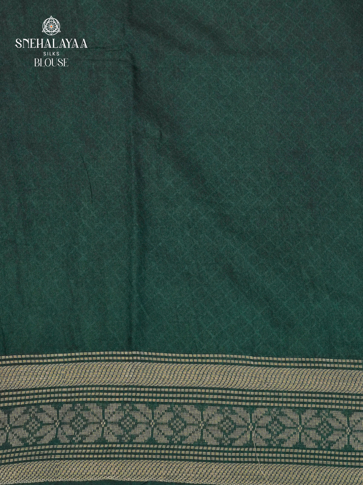 Off-White Kalamkari Saree with Dark Green Woven Border