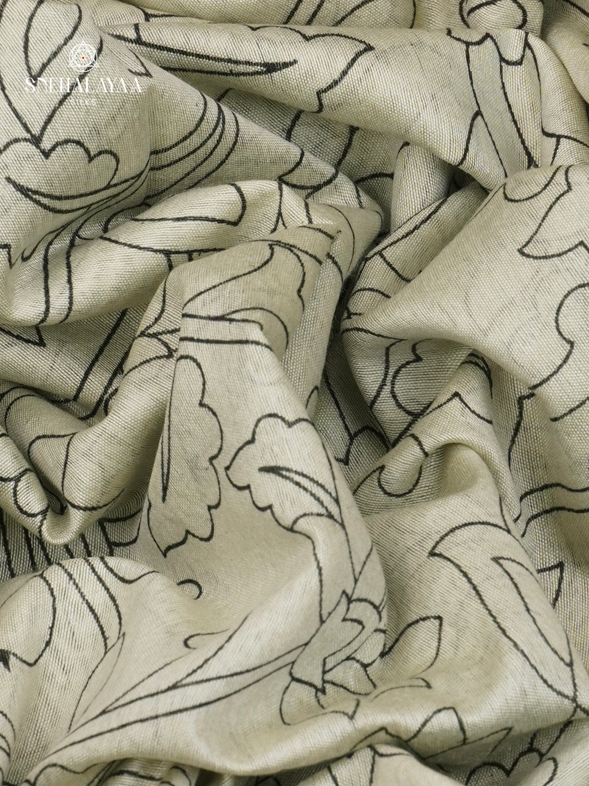 Light Pistachio Kalamkari Saree with Dark Green Woven Border