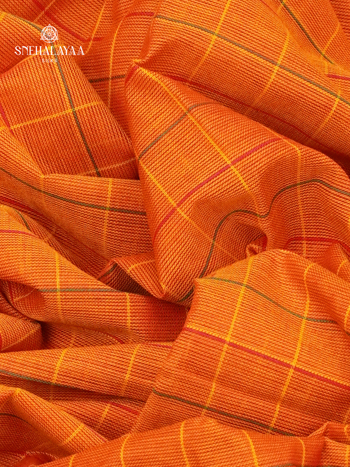 Checked Orange Kanchi Cotton Saree with Irandu Karai Zari Borders