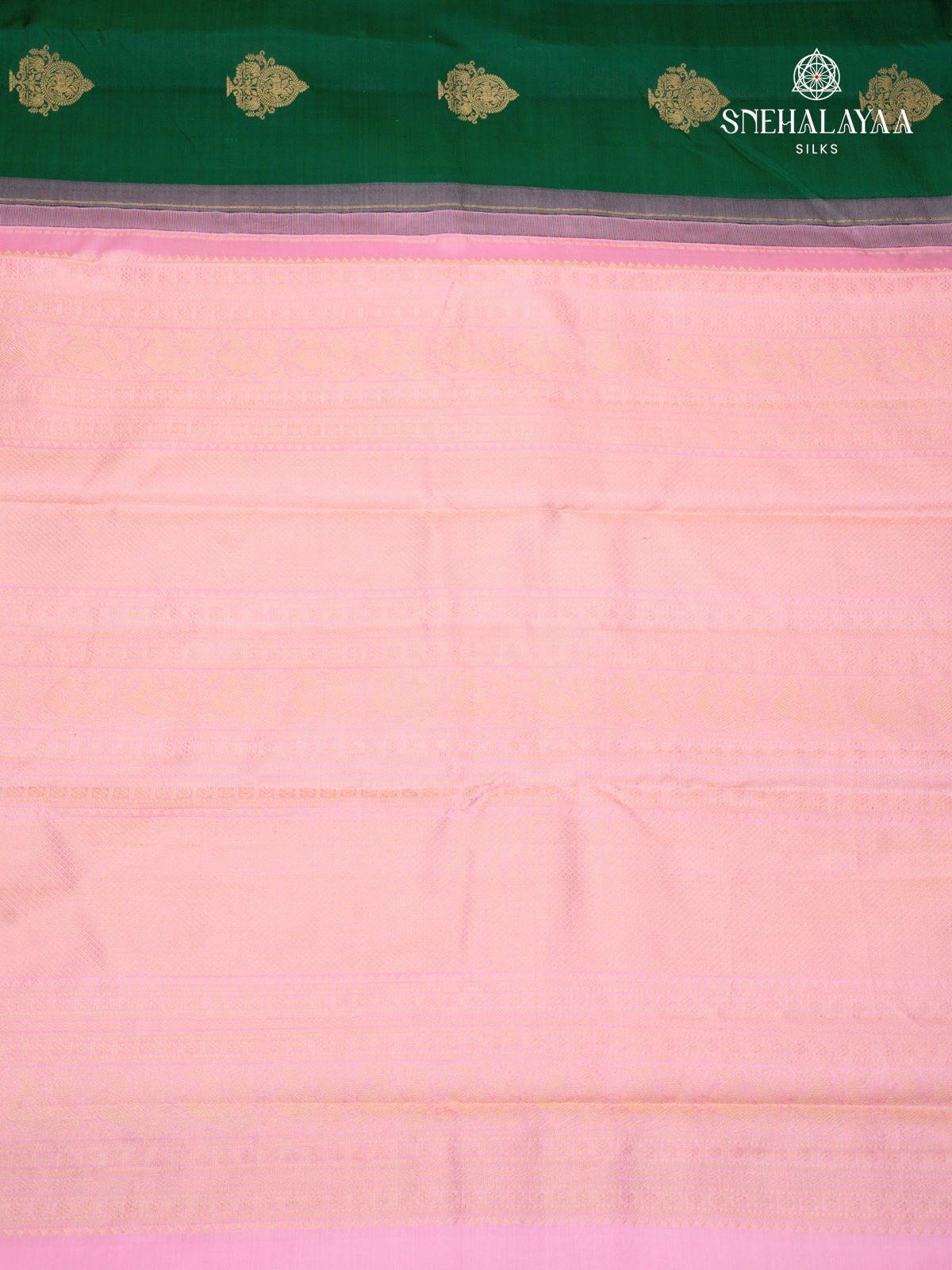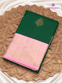Elegant Korvai Kanjivaram silk saree featuring intricate floral motifs woven all over the body, paired with a striking contrast border and richly designed pallu , a perfect blend of tradition and grandeur.