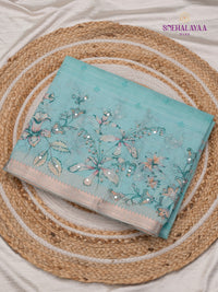 Teal Blue Kota Embroidery Saree