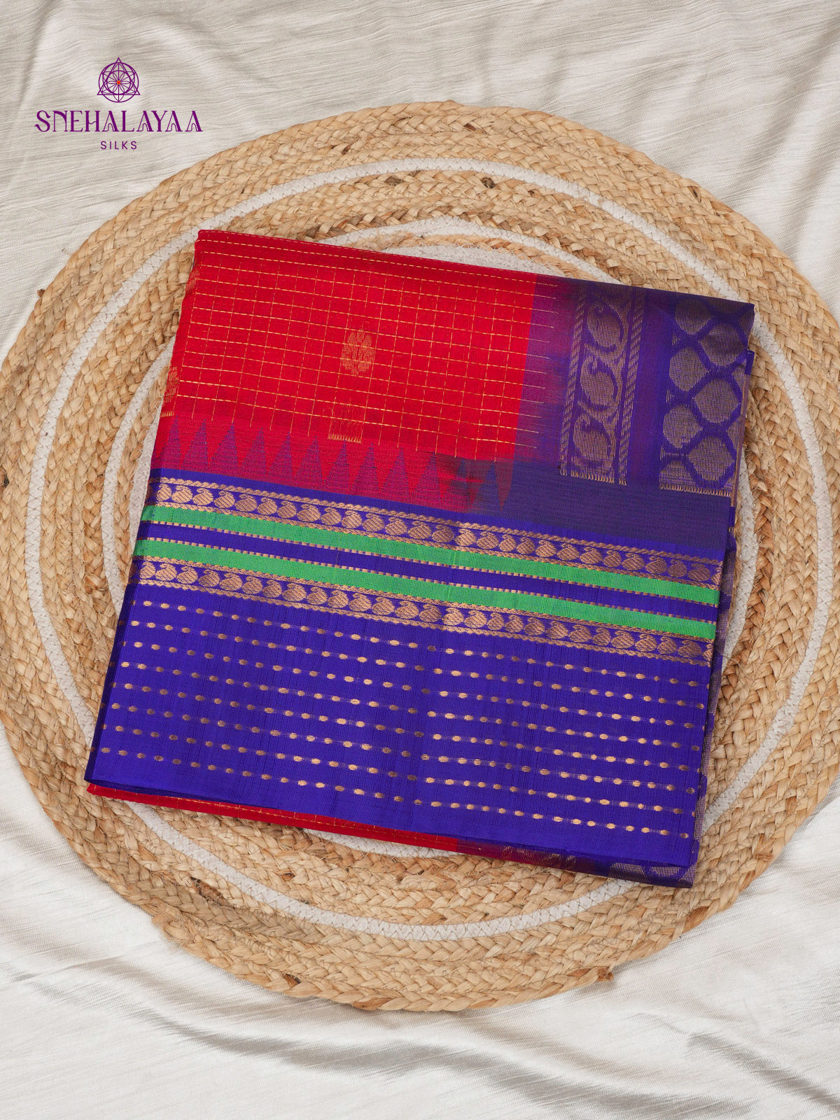 Rust Brown Kuppadam Silk Cotton Saree with Zari Border