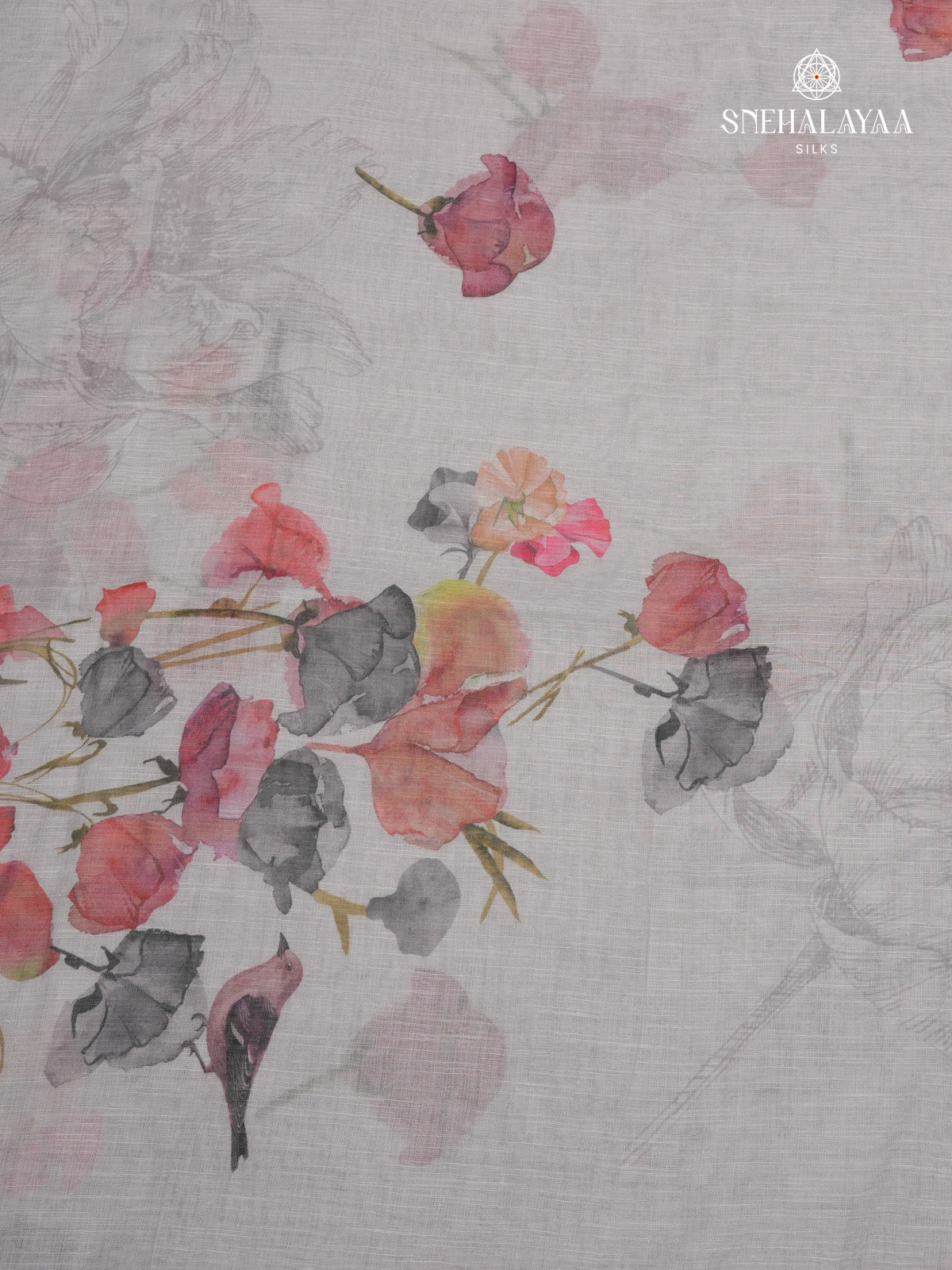 A lightweight, breathable linen saree featuring elegant printed patterns for a timeless, ethnic look. Perfect for everyday comfort or subtle festive styling with its soft texture and graceful drape.