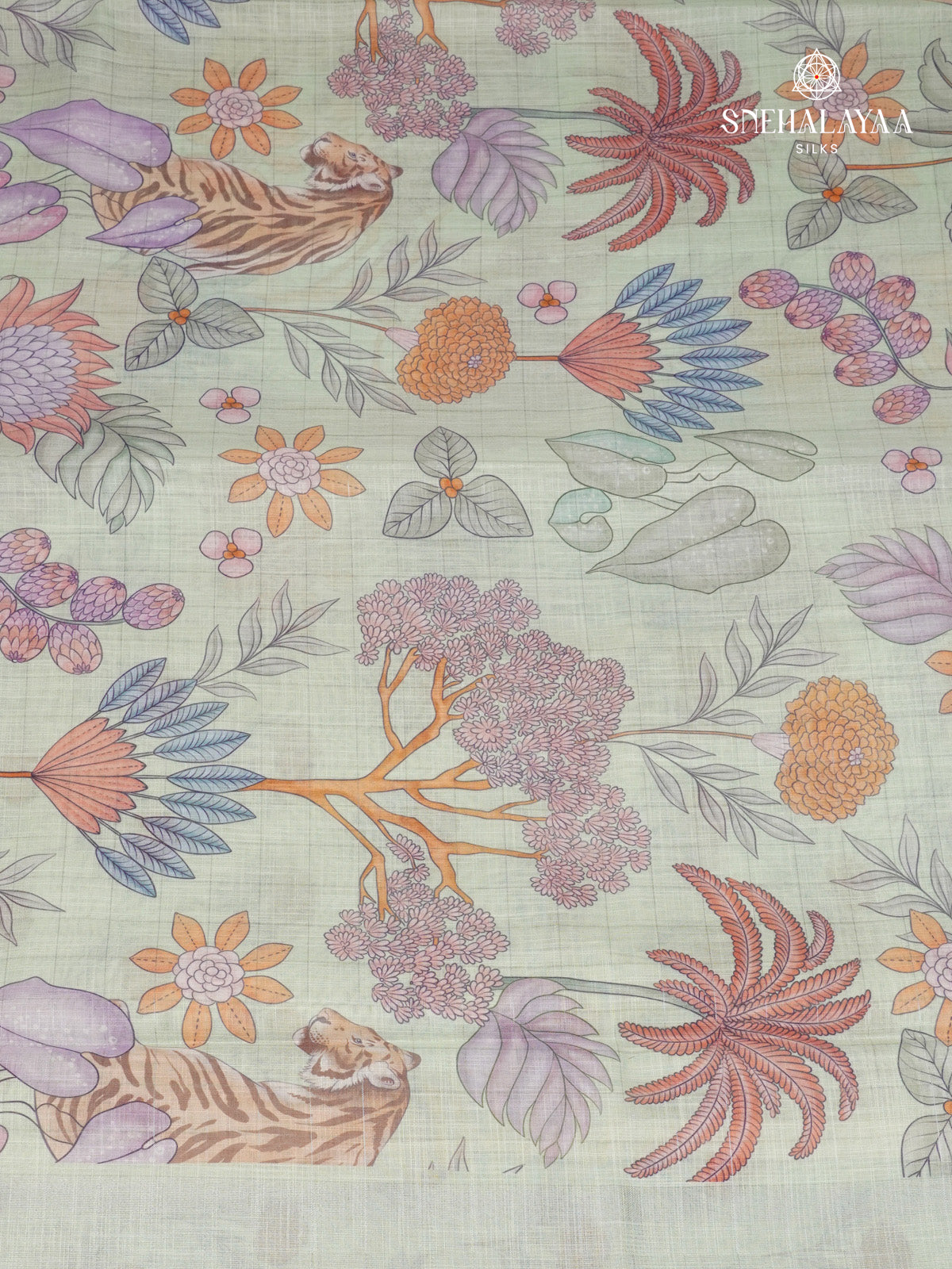 A lightweight, breathable linen saree featuring elegant printed patterns for a timeless, ethnic look. Perfect for everyday comfort or subtle festive styling with its soft texture and graceful drape.
