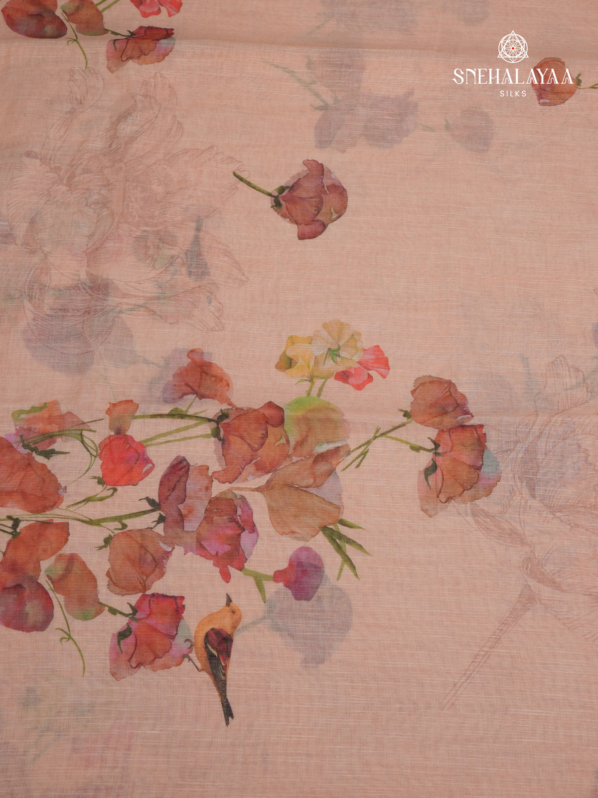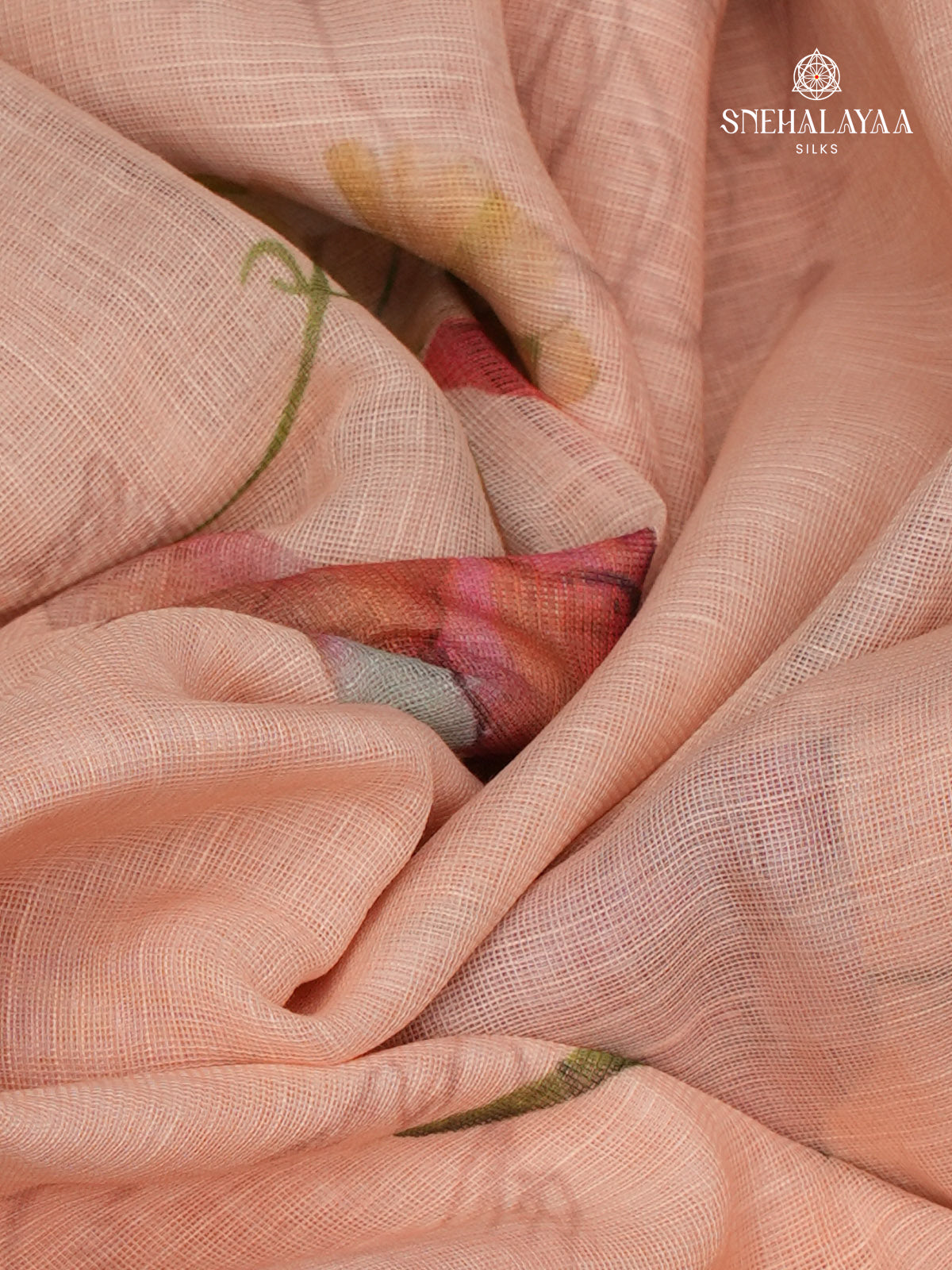 A lightweight, breathable linen saree featuring elegant printed patterns for a timeless, ethnic look. Perfect for everyday comfort or subtle festive styling with its soft texture and graceful drape.