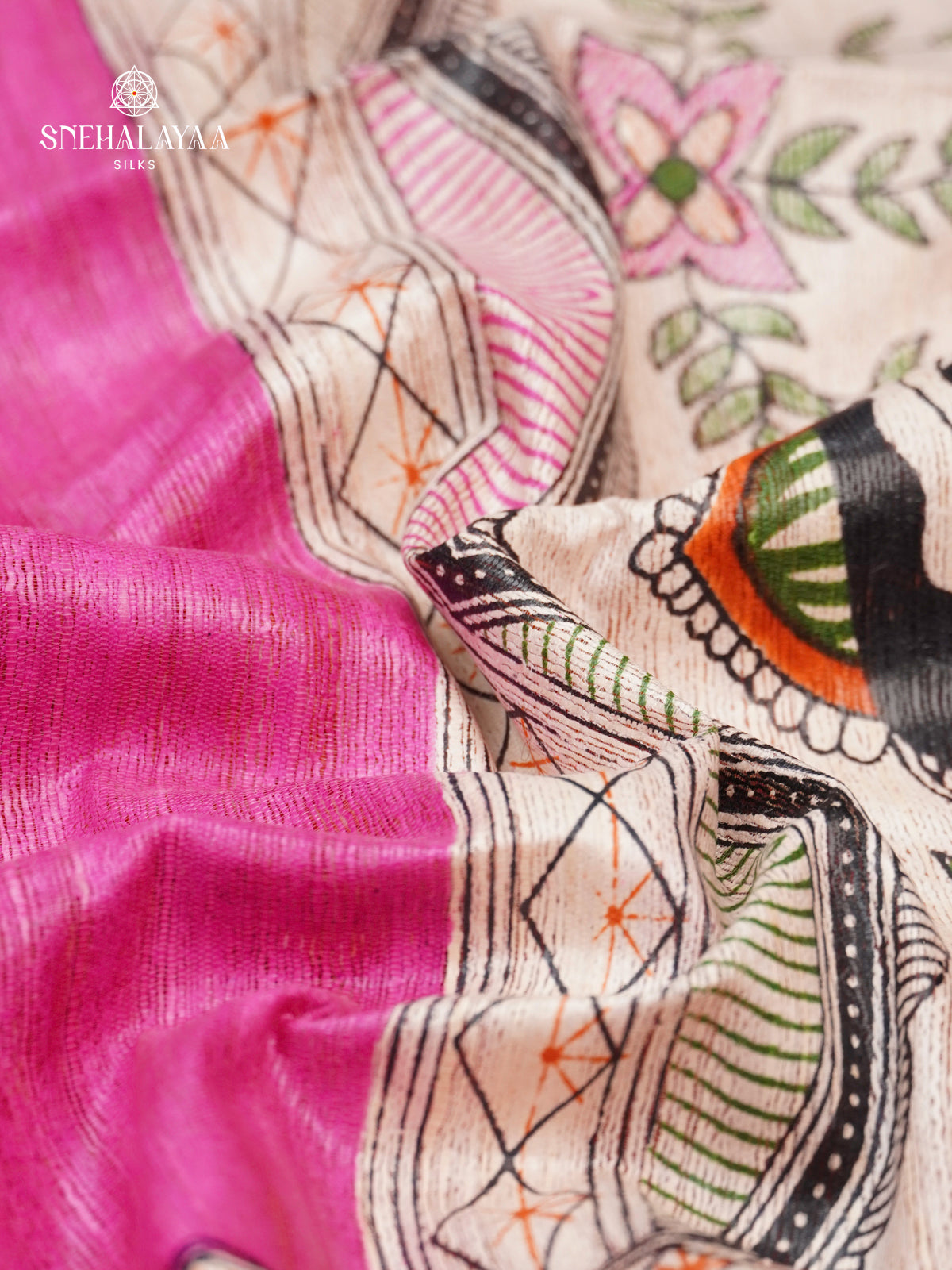 Rani Pink Madhubani Printed Saree