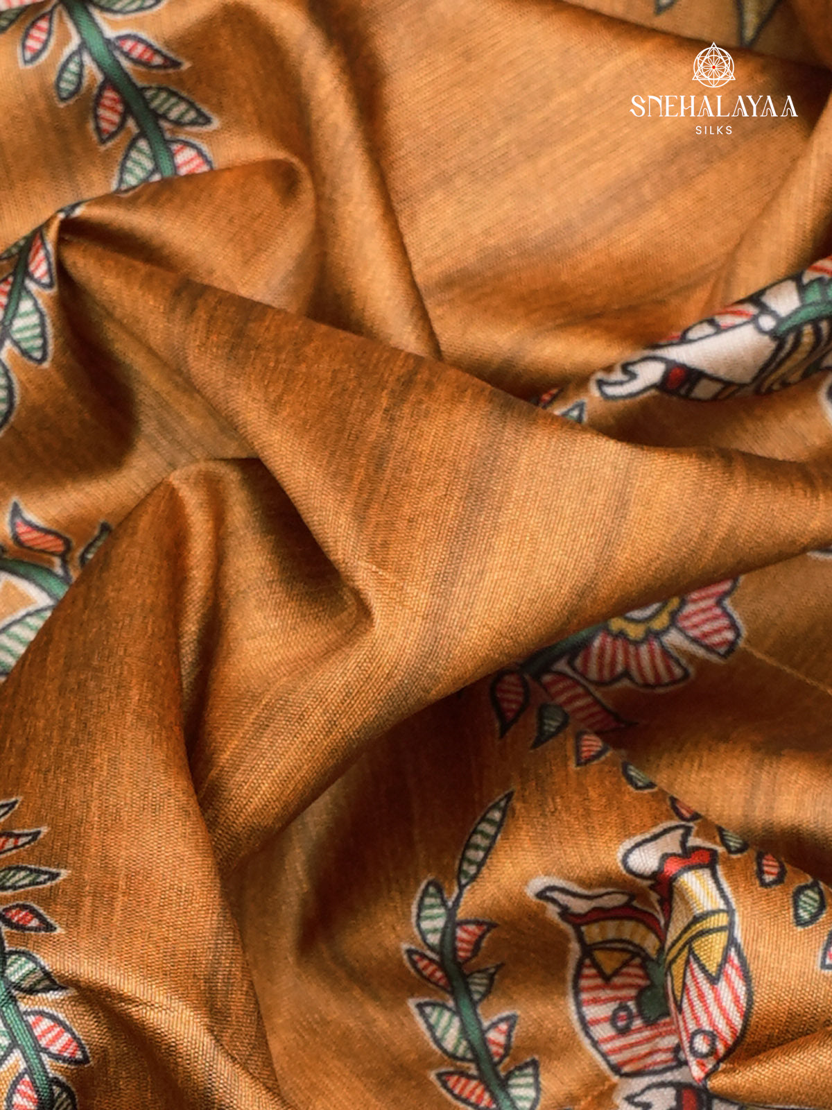 A Madhubani printed saree adorned with intricate folk motifs that celebrate India’s rich heritage. Perfect for adding artistic elegance to any traditional occasion.