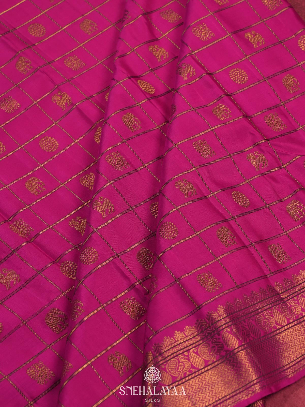 A timeless Kanjivaram silk saree crafted with rich pure silk and traditional zari weaving. Known for its royal elegance, durability, and classic South Indian heritage