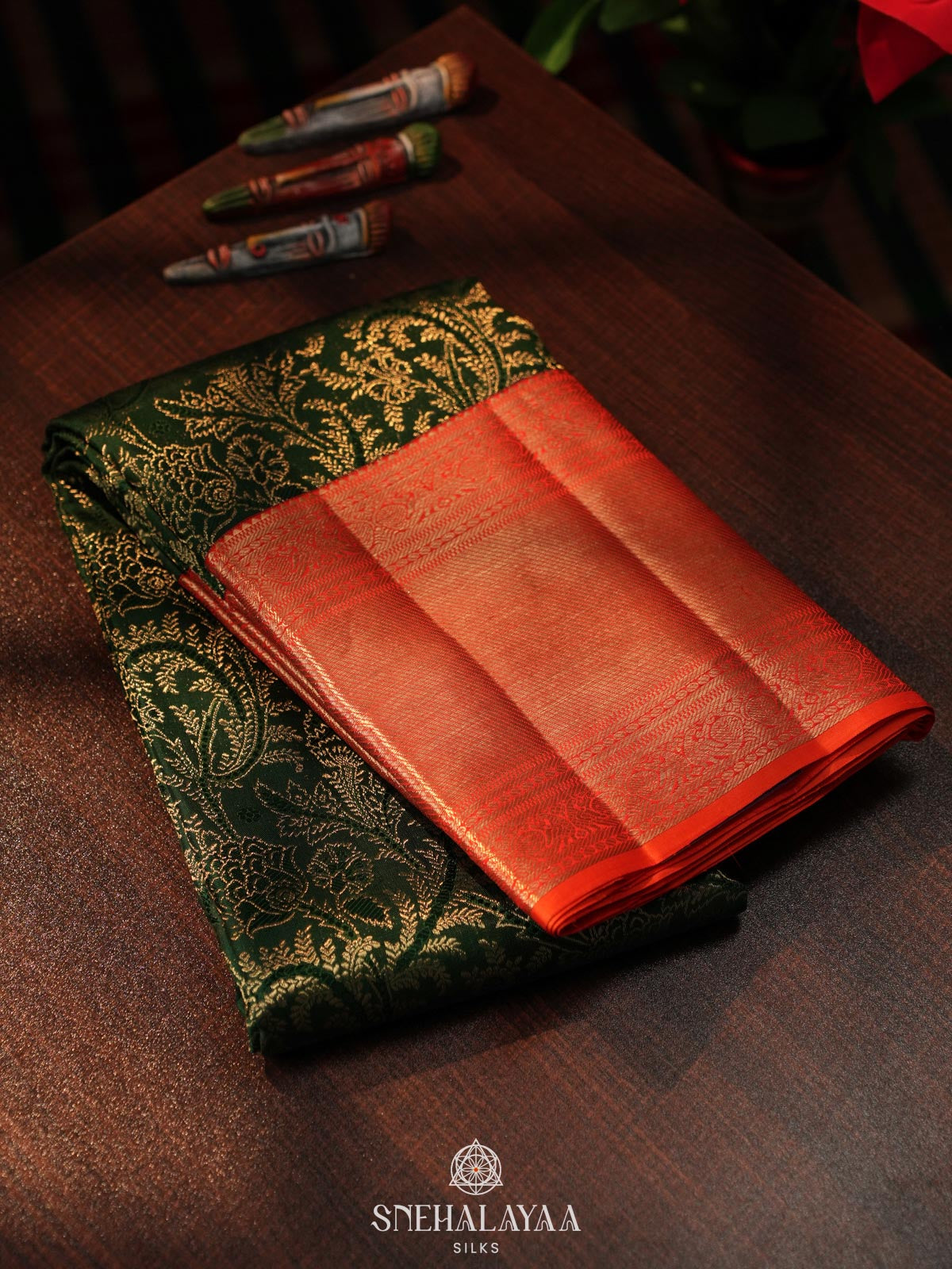 A timeless Kanjivaram silk saree crafted with rich pure silk and traditional zari weaving. Known for its royal elegance, durability, and classic South Indian heritage