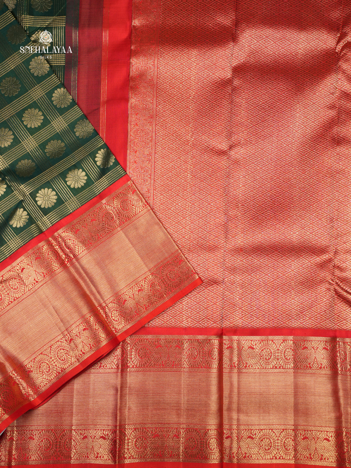 Pine Green Kancheevaram Silk Saree