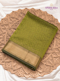 A Maheswari silk cotton saree with checks and zari border is a perfect blend of elegance and tradition. Made from a mix of silk and cotton, it offers a light yet luxurious feel. The saree features intricate butta woven throughout the fabric.