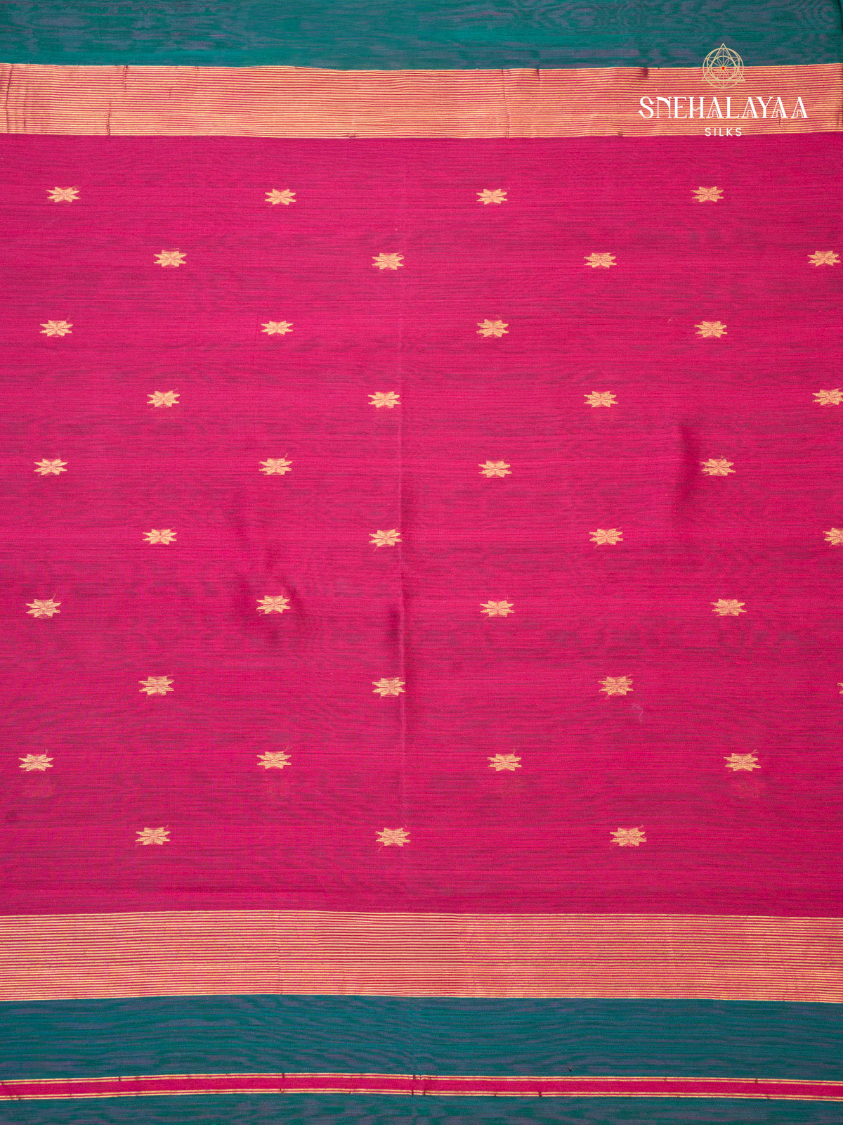 A Maheswari silk cotton saree with butta and zari border is a perfect blend of elegance and tradition. Made from a mix of silk and cotton, it offers a light yet luxurious feel. The saree features intricate butta woven throughout the fabric.