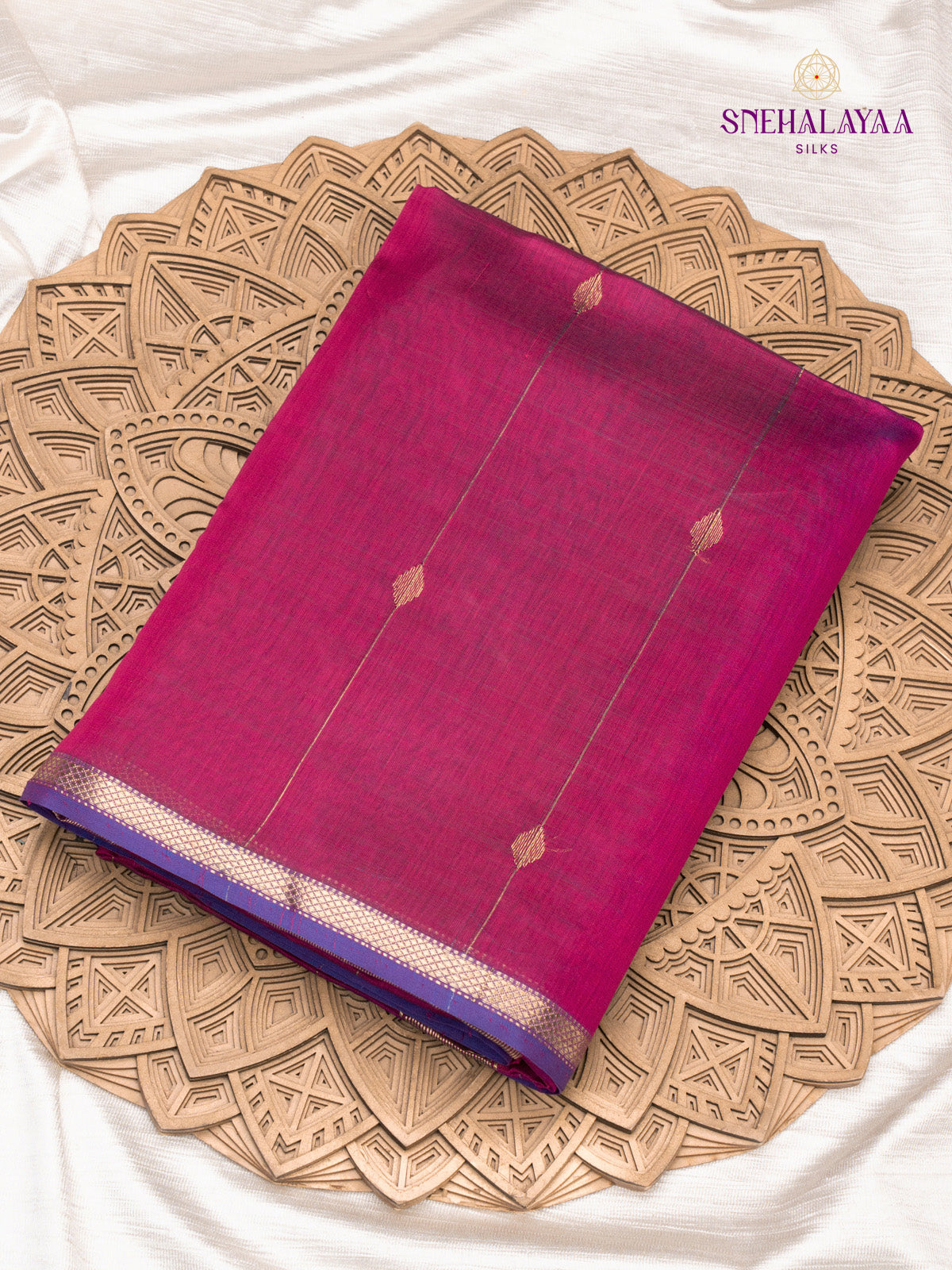 A Maheswari silk cotton saree with butta and zari border is a perfect blend of elegance and tradition. Made from a mix of silk and cotton, it offers a light yet luxurious feel. The saree features intricate butta woven throughout the fabric.