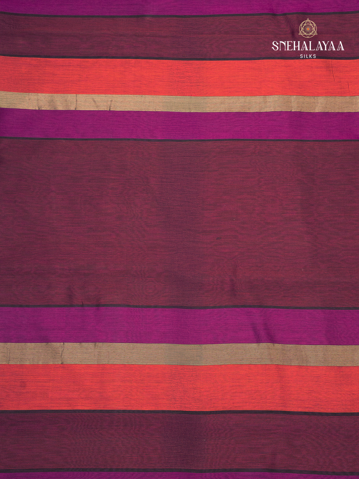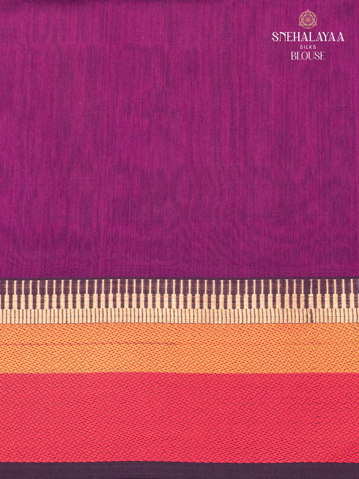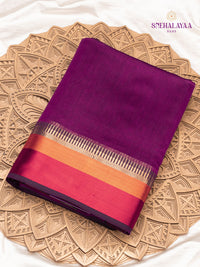 A Maheswari silk cotton saree featuring a contrast border and pallu, blending the shine of silk with the comfort of cotton. The contrasting borders and pallu add vibrancy and elegance, making it perfect for festive occasions.