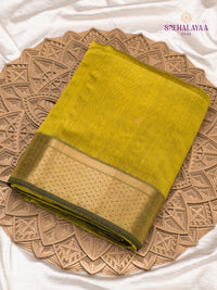 A Maheswari silk cotton saree featuring a contrast border and pallu, blending the shine of silk with the comfort of cotton. The contrasting borders and pallu add vibrancy and elegance, making it perfect for festive occasions.